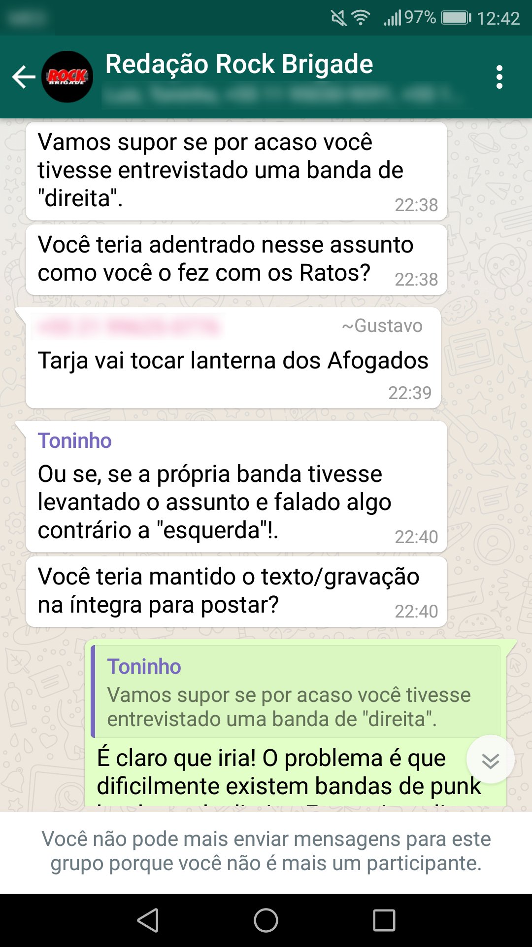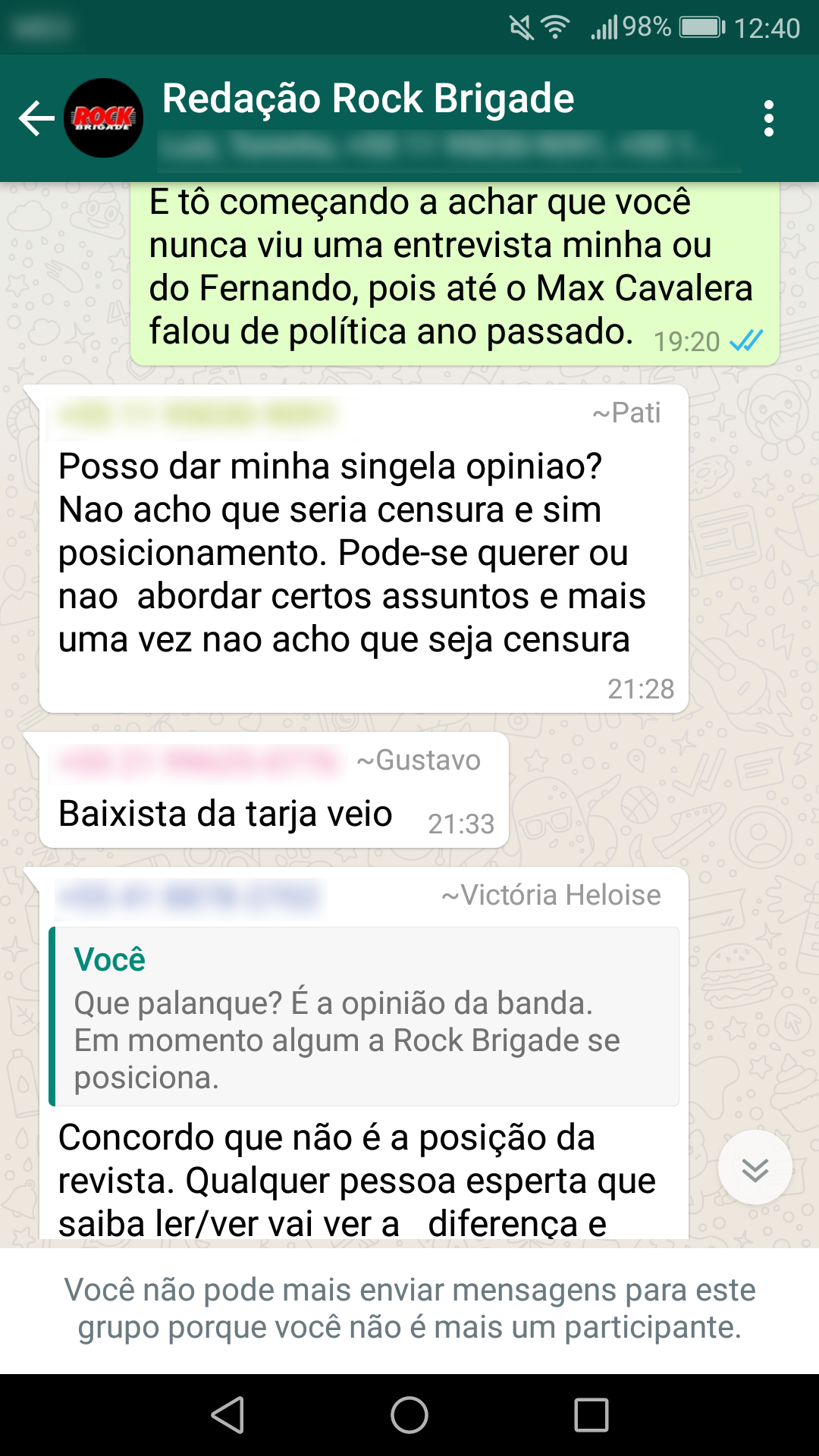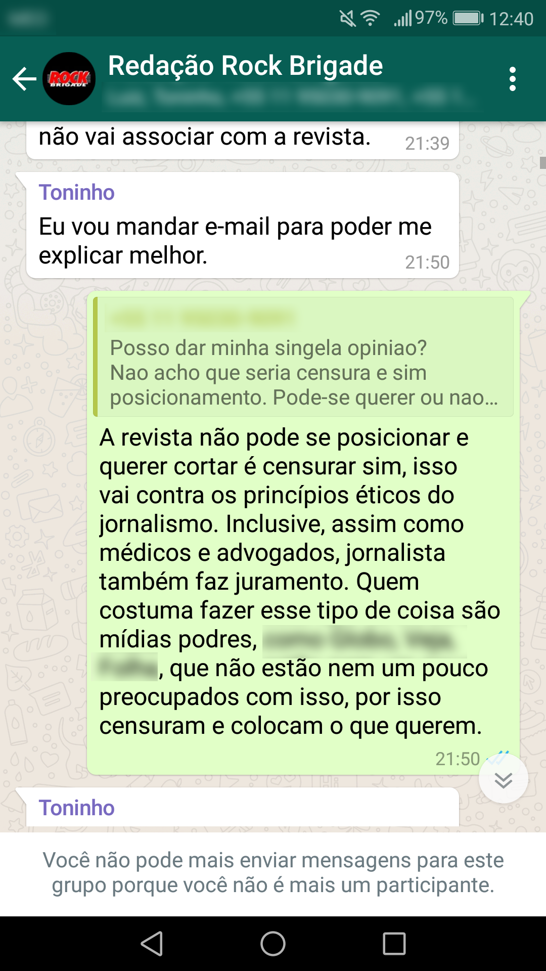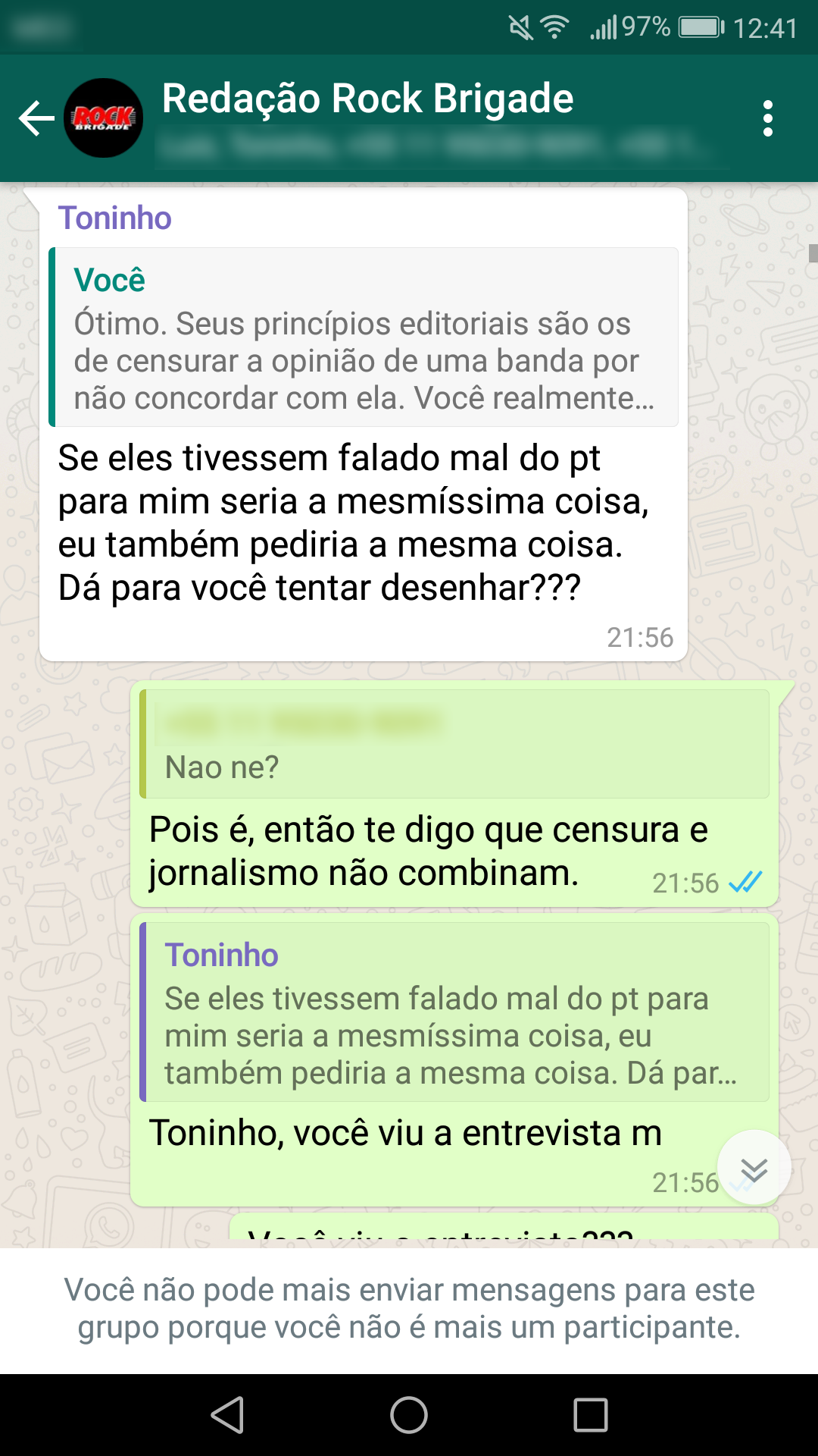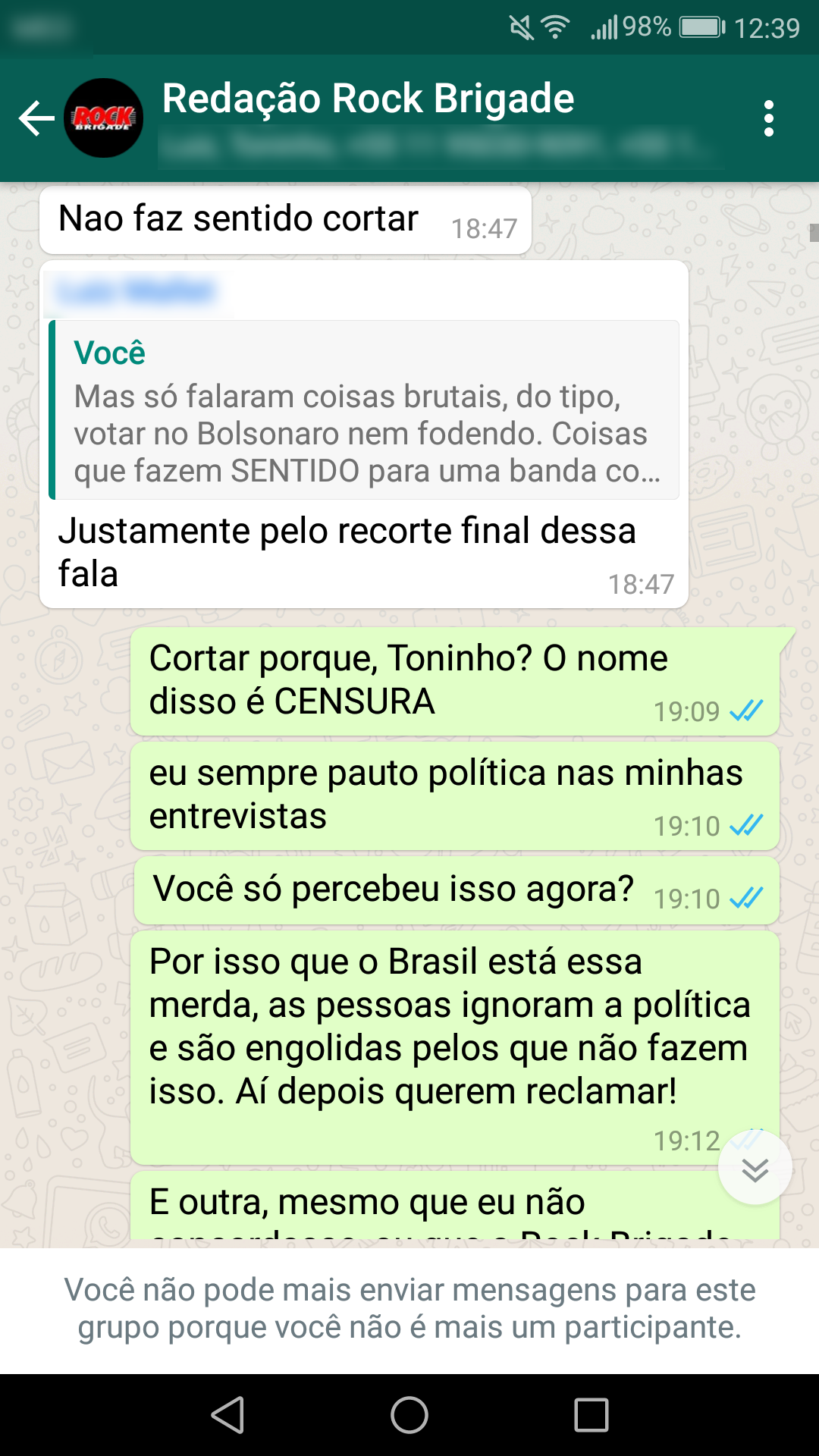 Abaixo estão as conversas que corroboram a nossa primeira nota oficial sobre a censura: