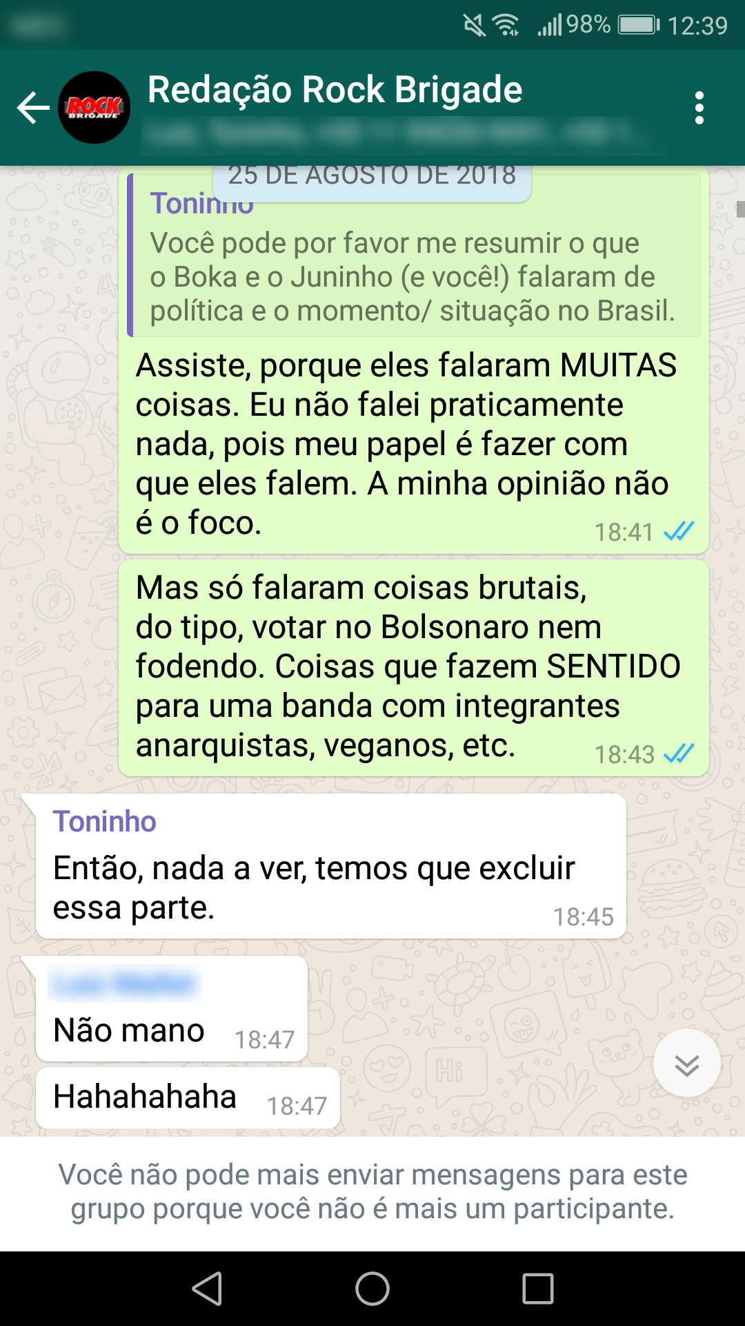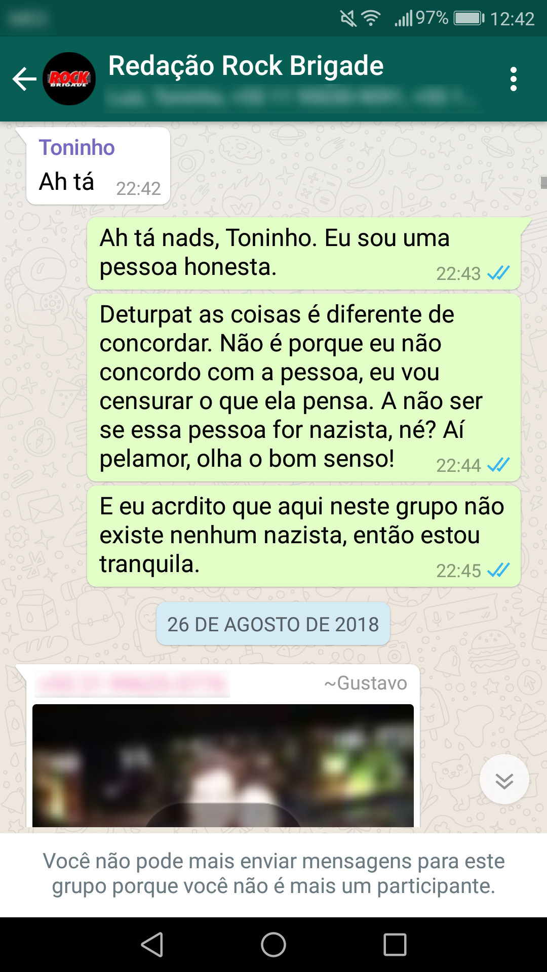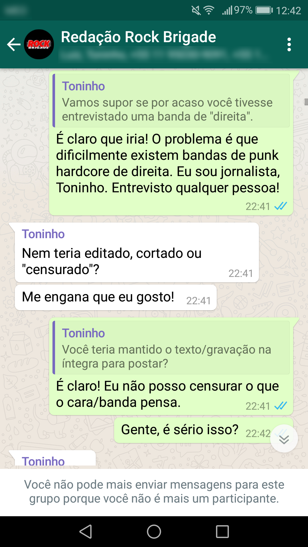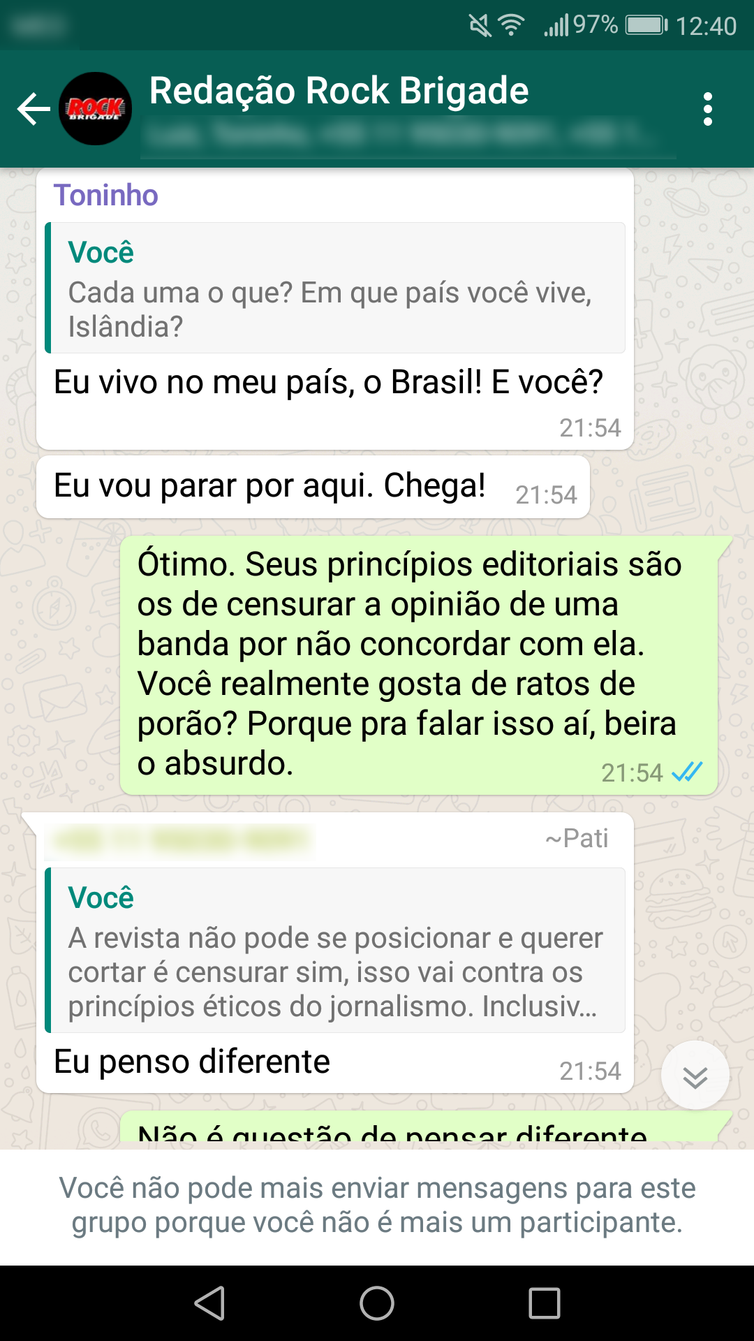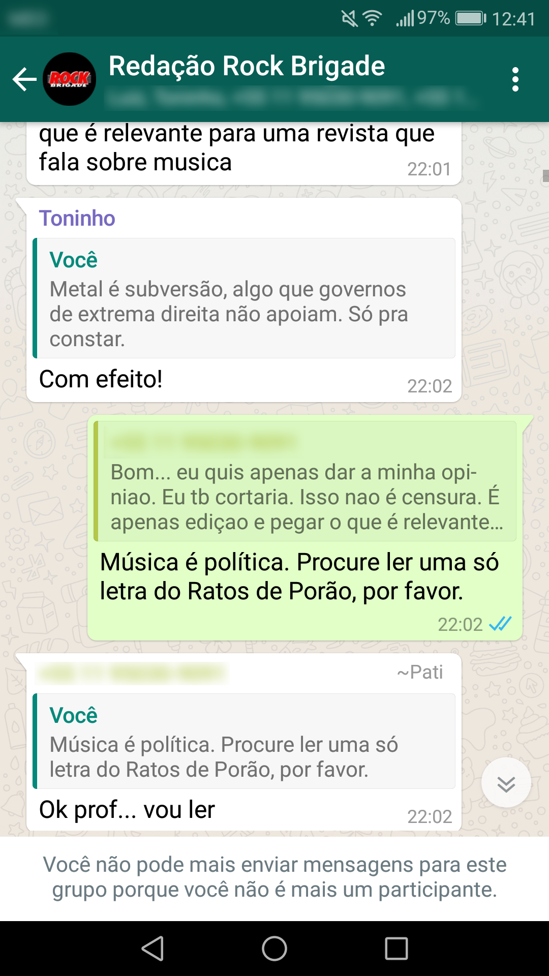 Abaixo estão as conversas que corroboram a nossa primeira nota oficial sobre a censura: