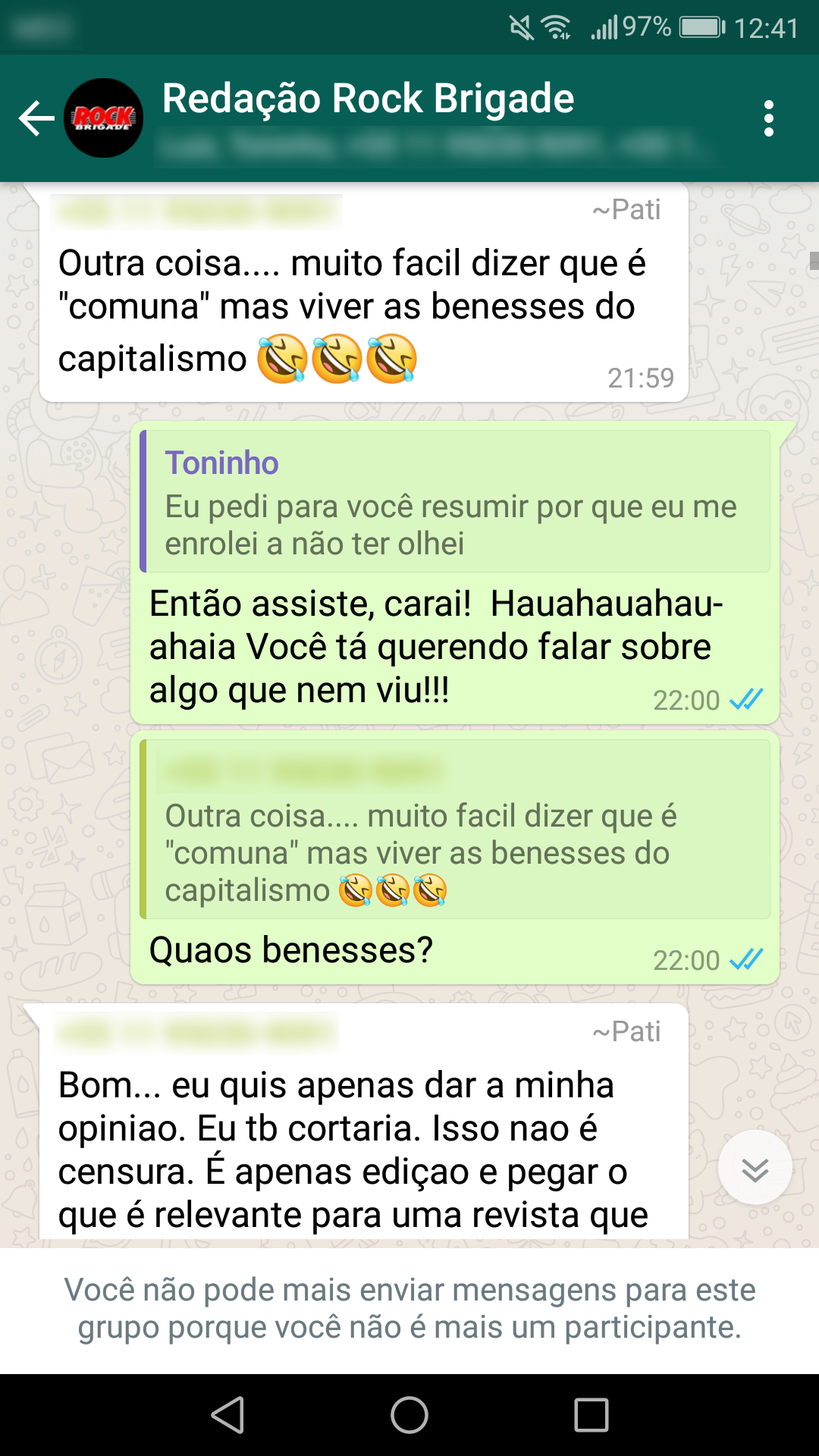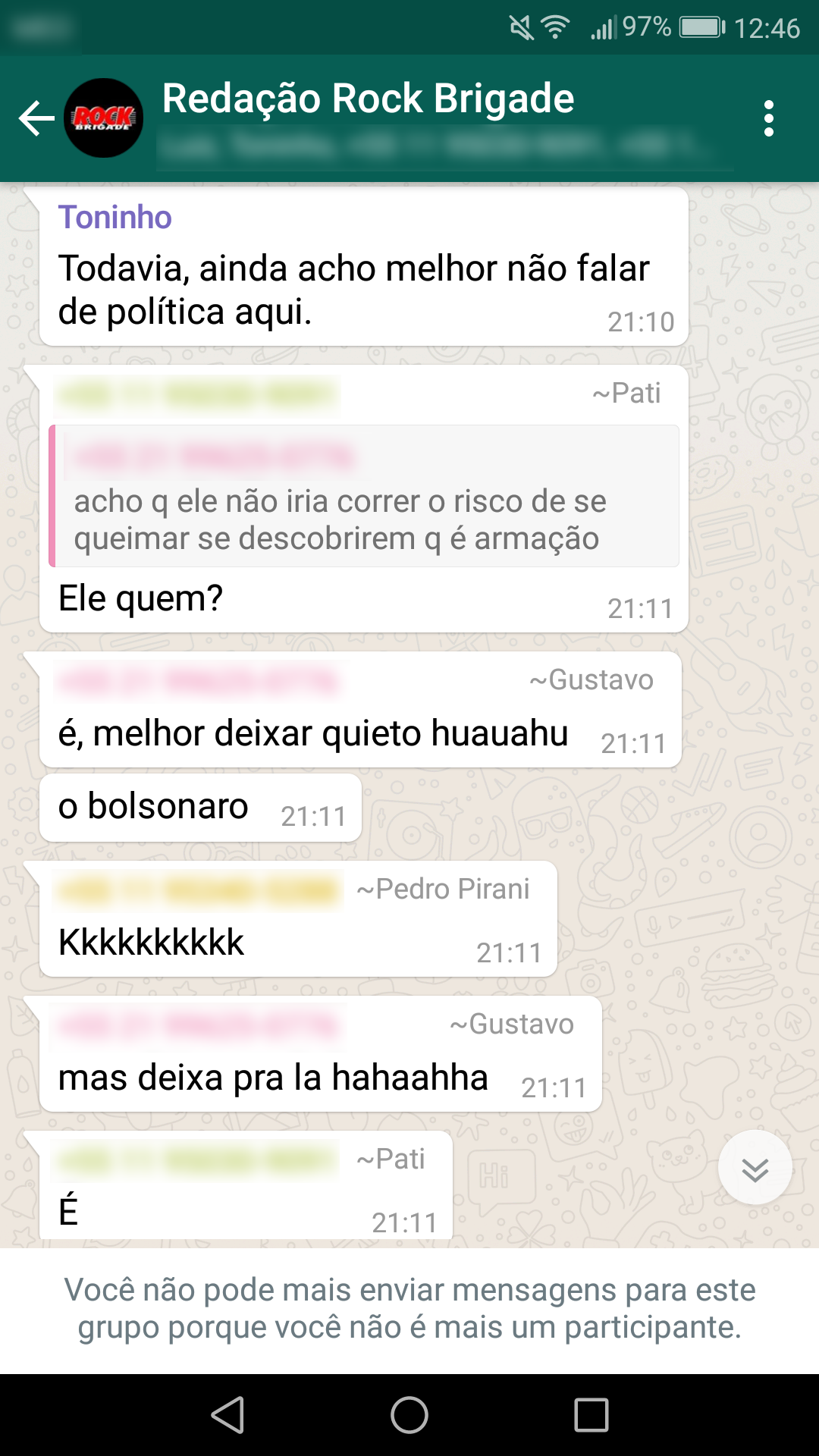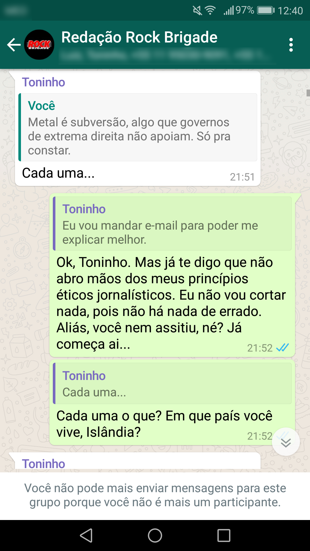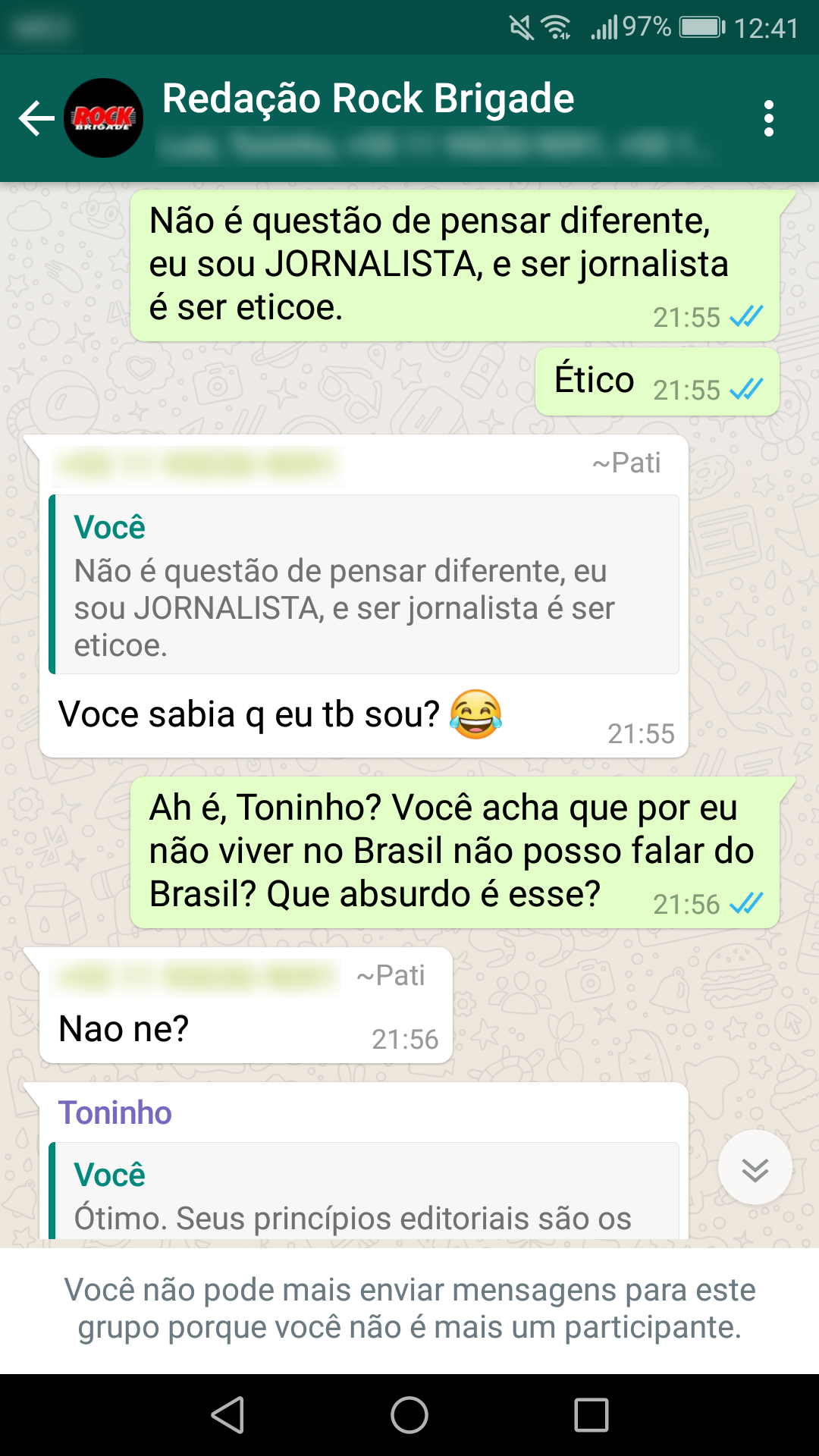 Abaixo estão as conversas que corroboram a nossa primeira nota oficial sobre a censura: