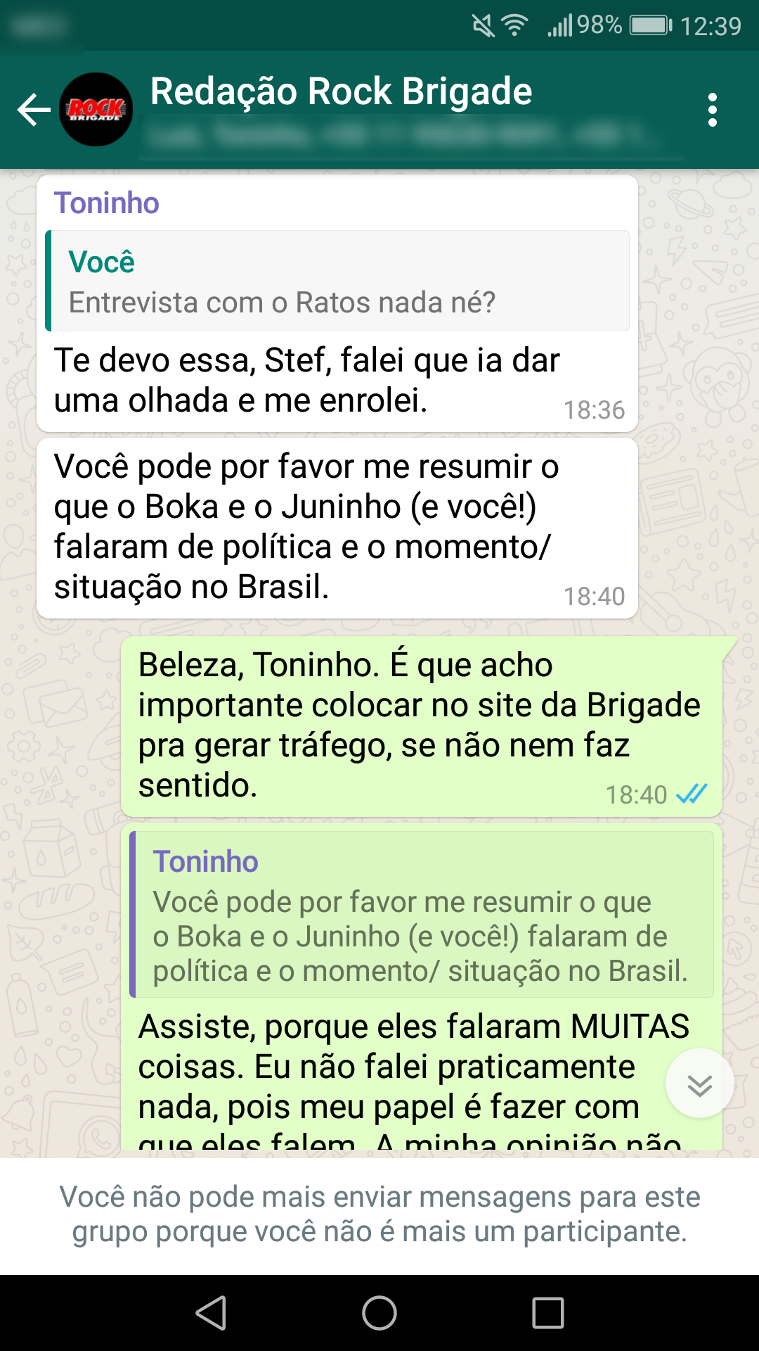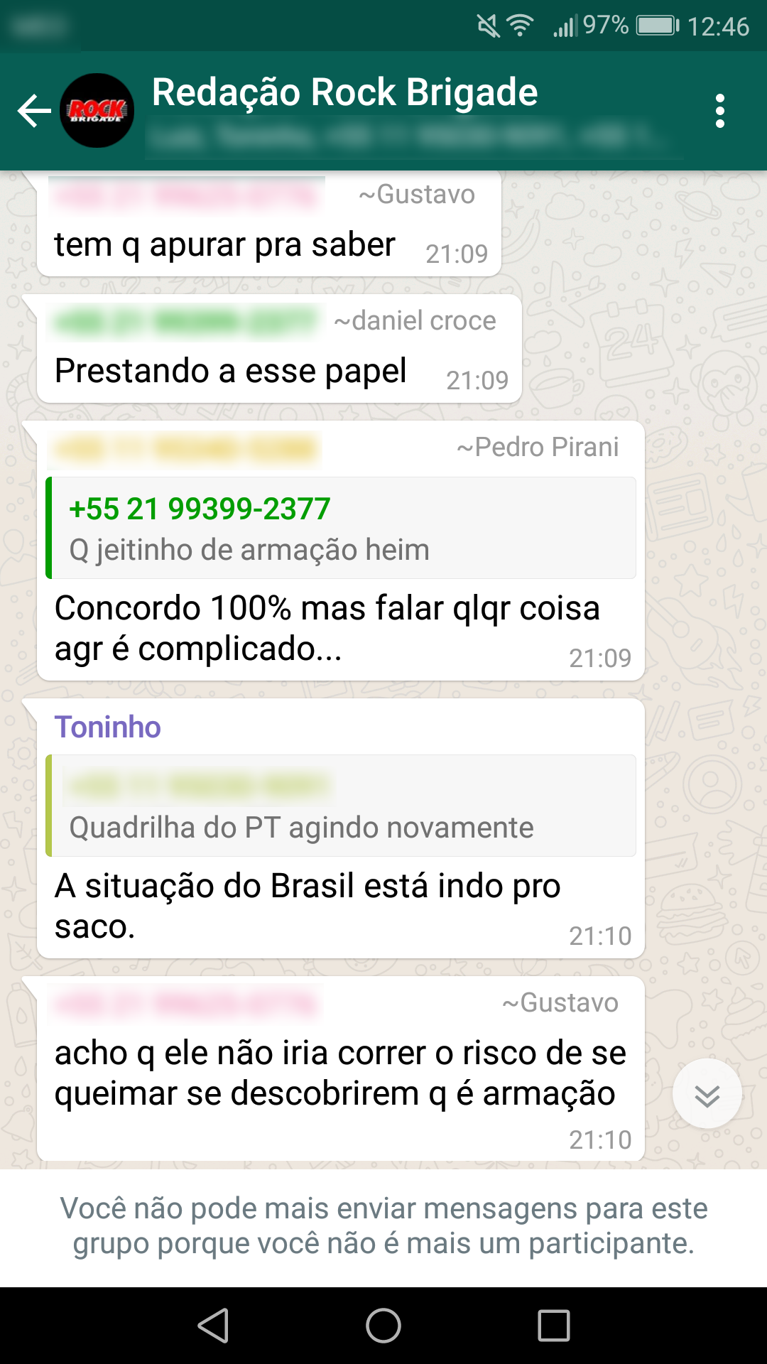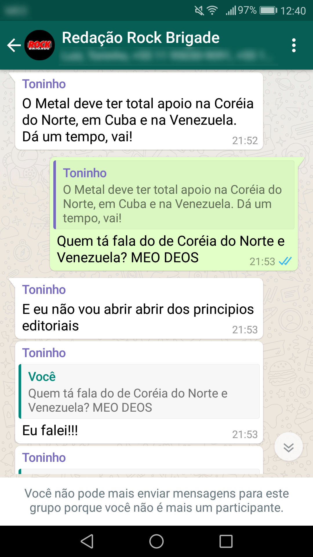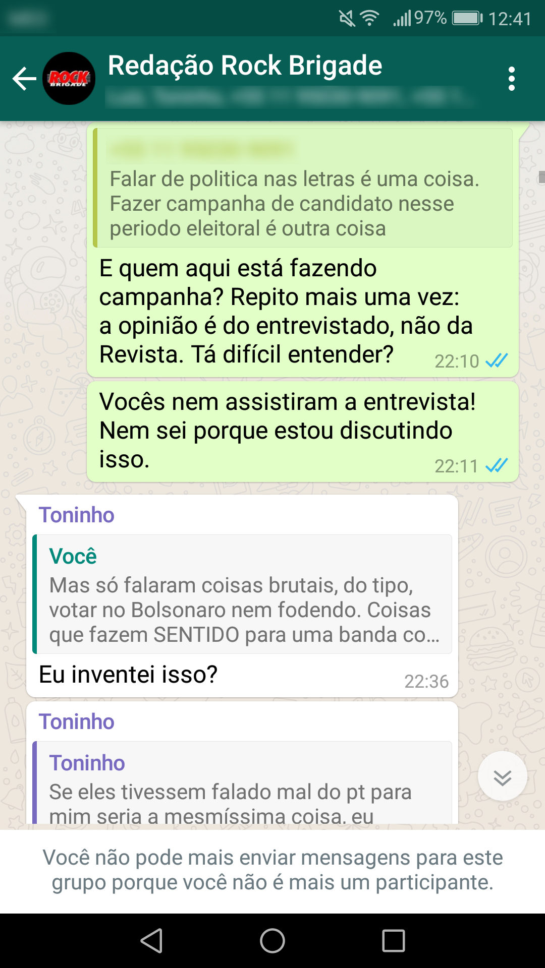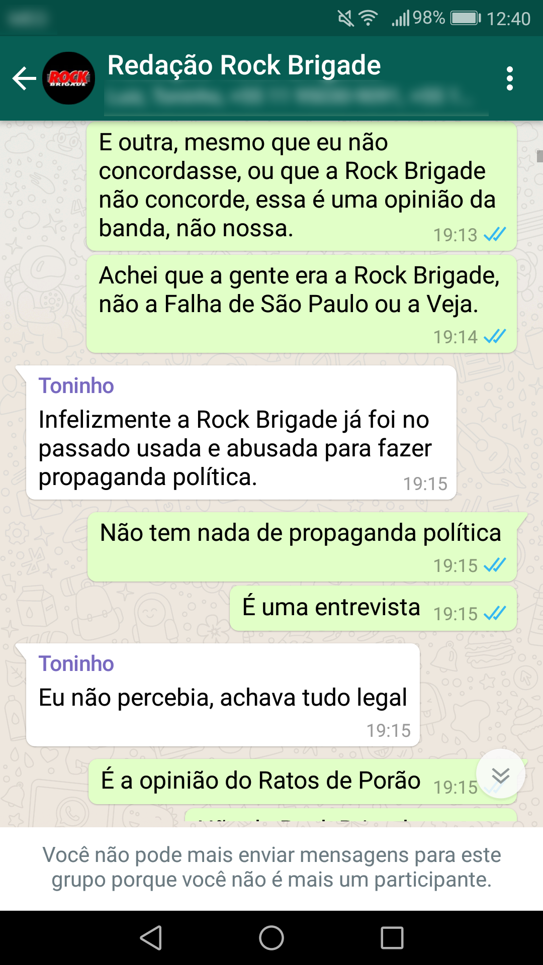 Abaixo estão as conversas que corroboram a nossa primeira nota oficial sobre a censura: