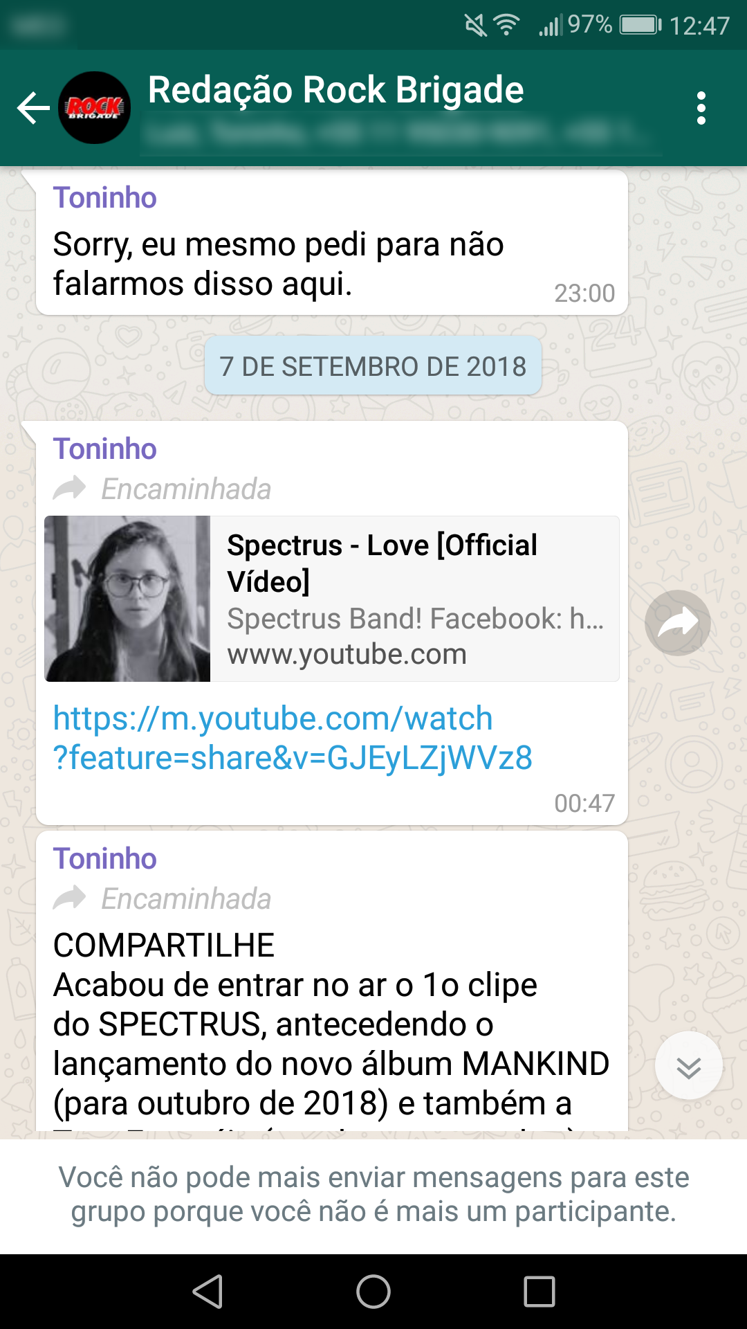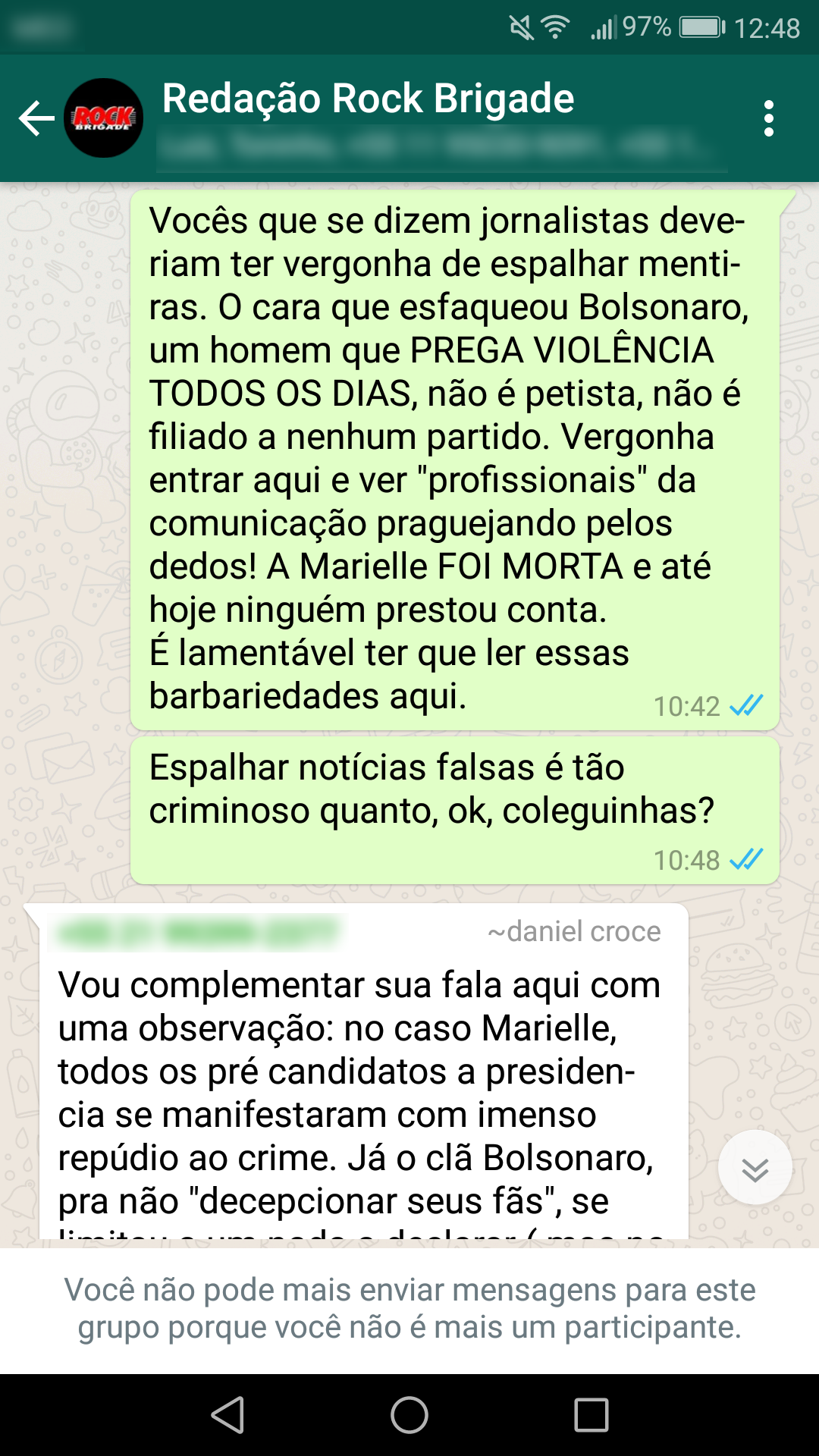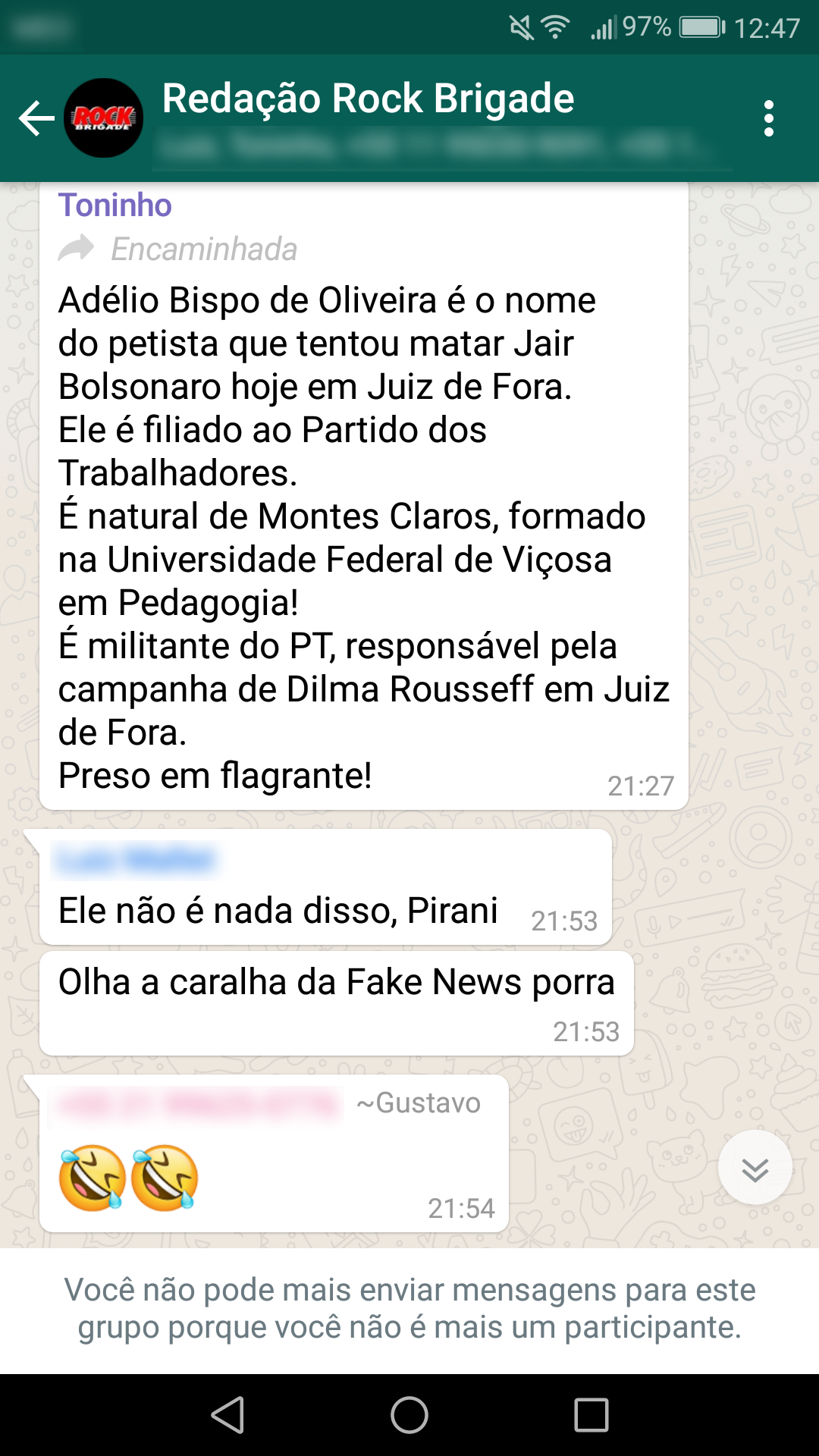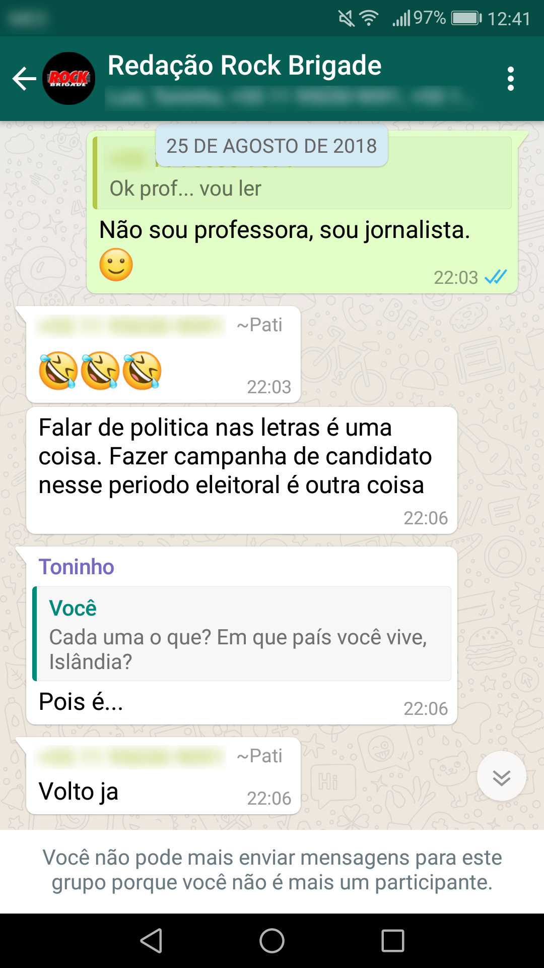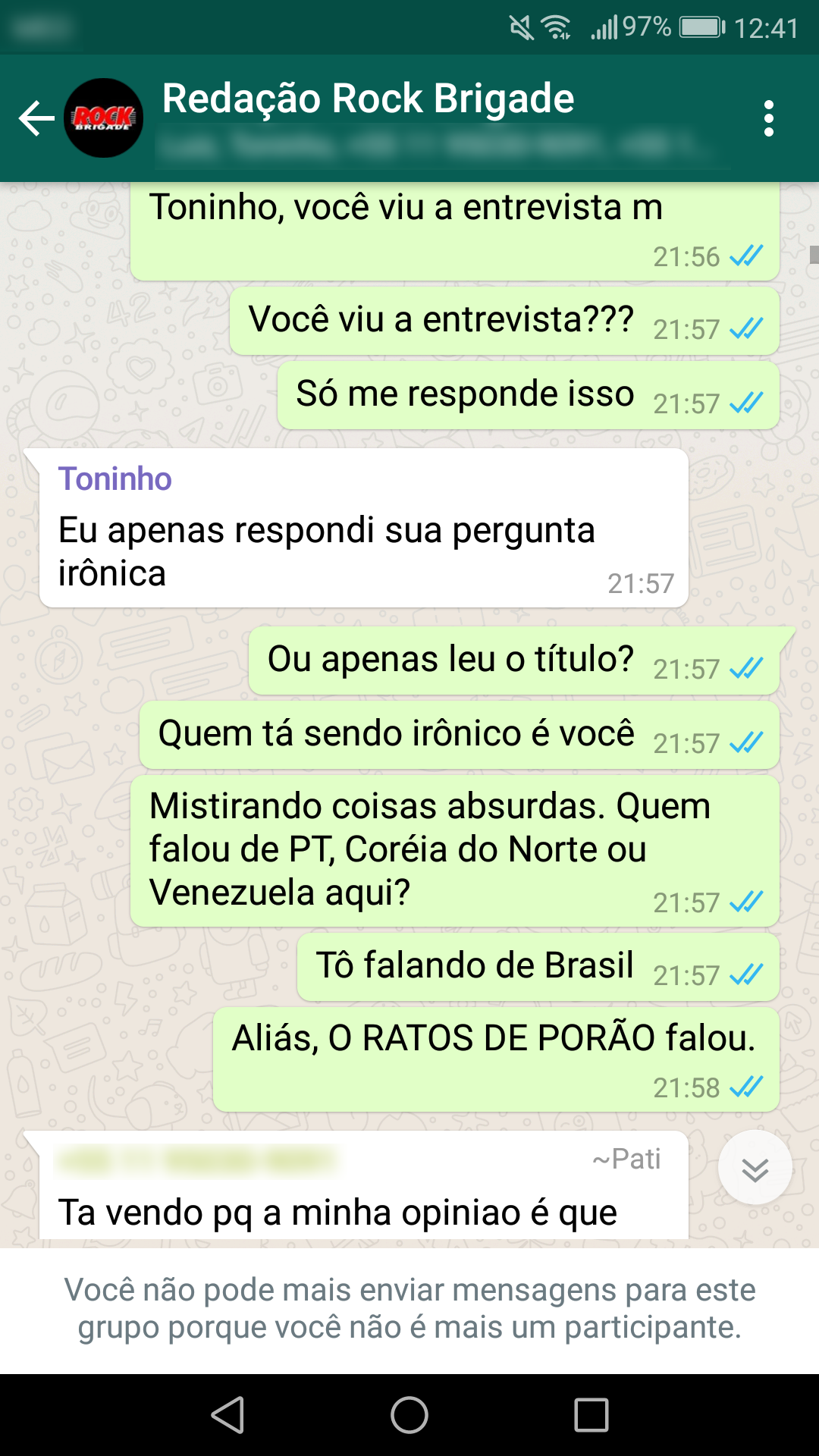 Abaixo estão as conversas que corroboram a nossa primeira nota oficial sobre a censura: