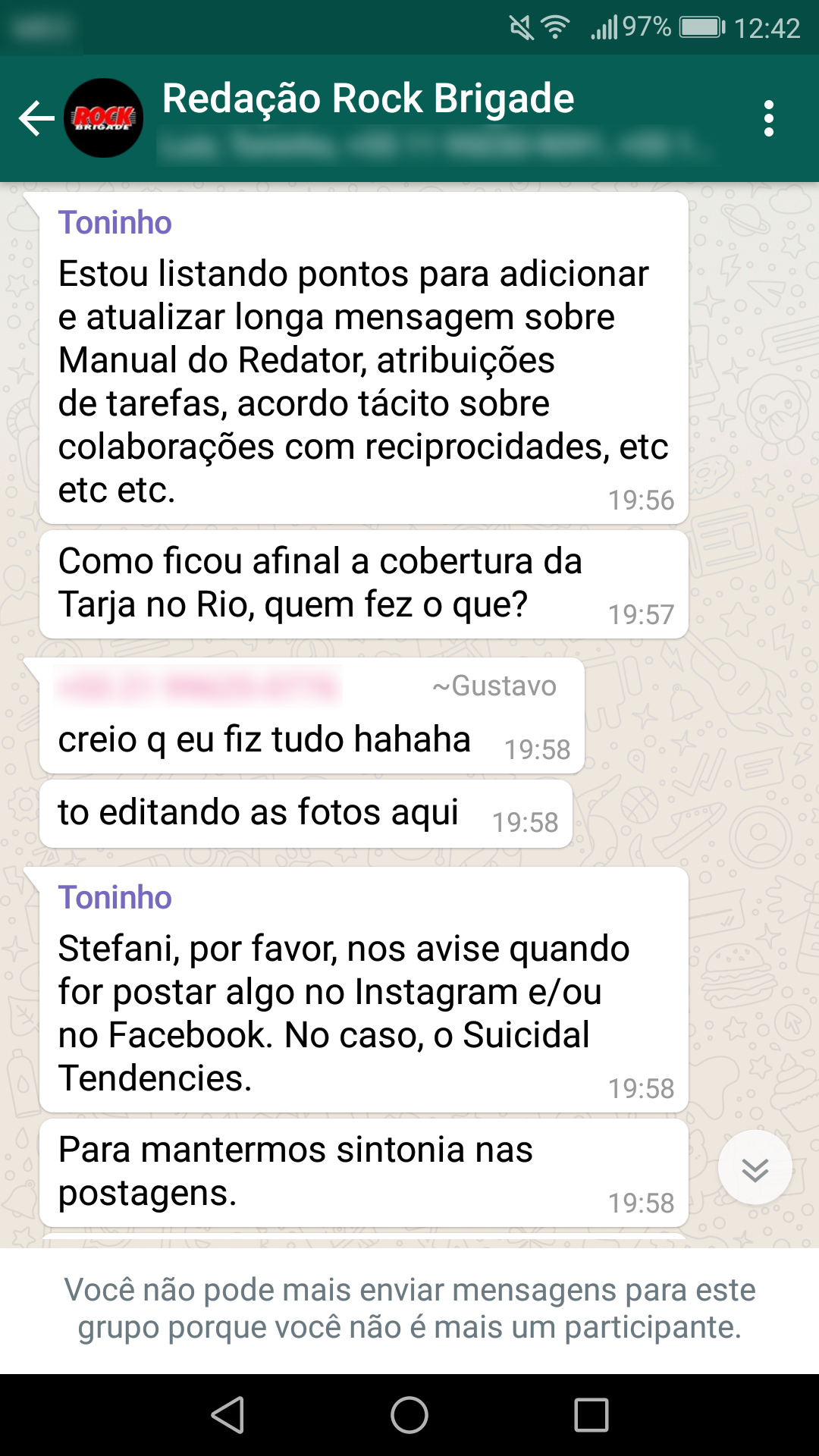 Em outro ponto da resposta da Rock Brigade consta que a entrevista já havia sido postada no Instagram criado pela jornalista e que não houve censura. Porém, é necessário ressaltar que o que havia sido compartilhado pela própria Stefani era apenas uma ‘chamada’ e não a entrevista na íntegra, até mesmo porque não teria sido possível ter colocado toda a entrevista, pois o Instagram nem oferece esse recurso no momento.
