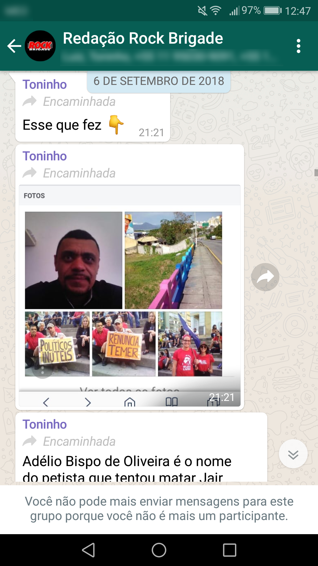 Foi exatamente após a chamada – a qual já mostrava em sua prévia que o RDP era contrário à candidatura de Bolsonaro – que foi exigido por Pirani que removêssemos as falas dos integrantes da banda que expressavam seus posicionamentos políticos no atual cenário brasileiro.