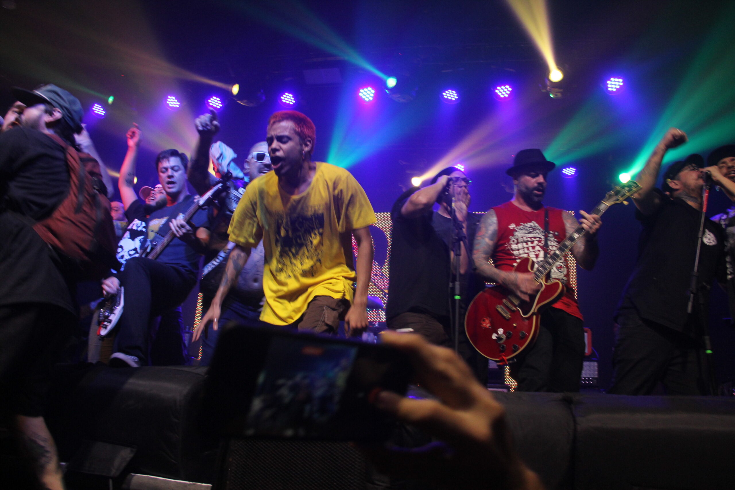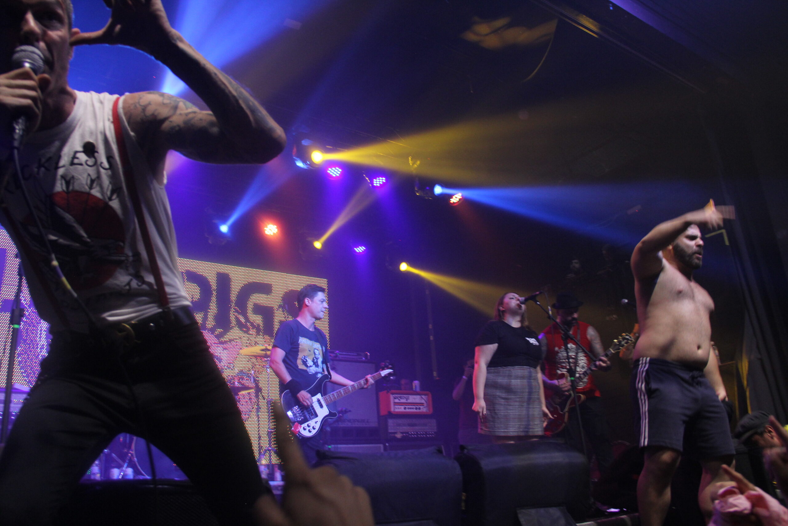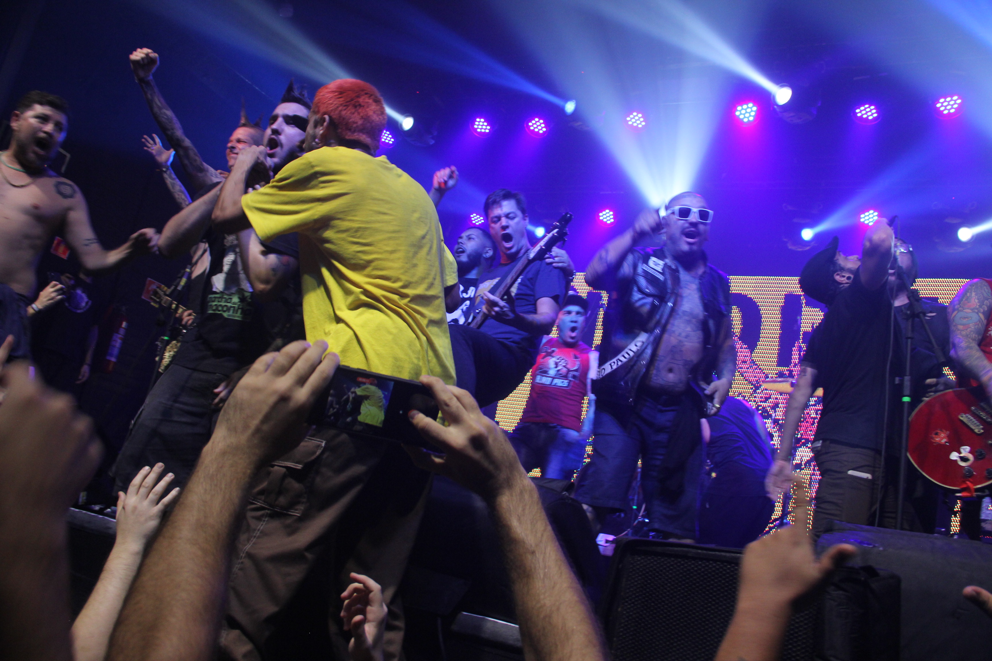 Após uma breve pausa, chegou o momento mais aguardado da noite: Blind Pigs celebrando seus 30 anos de existência no movimento punk rock! Logo no início, com o Carioca Club completamente lotado, a banda presenteou a plateia com algumas músicas da fase em inglês, incluindo ‘Victory‘, que não era executada ao vivo há mais de 25 anos. Na sequência, Teco Martins surgiu para mais uma colaboração, desta vez em ‘Amanhã Não Vai Mudar’. Proporcionando uma verdadeira aula de punk rock, o show rompeu qualquer barreira entre ‘público/artista’, com Henrike incentivando os fãs a subirem livremente ao palco e pegarem o microfone para entoar hinos do punk nacional como ‘Legião de Inconformados’, ‘Sentinela dos Mares’ e ‘Heróis ou Rebeldes’.