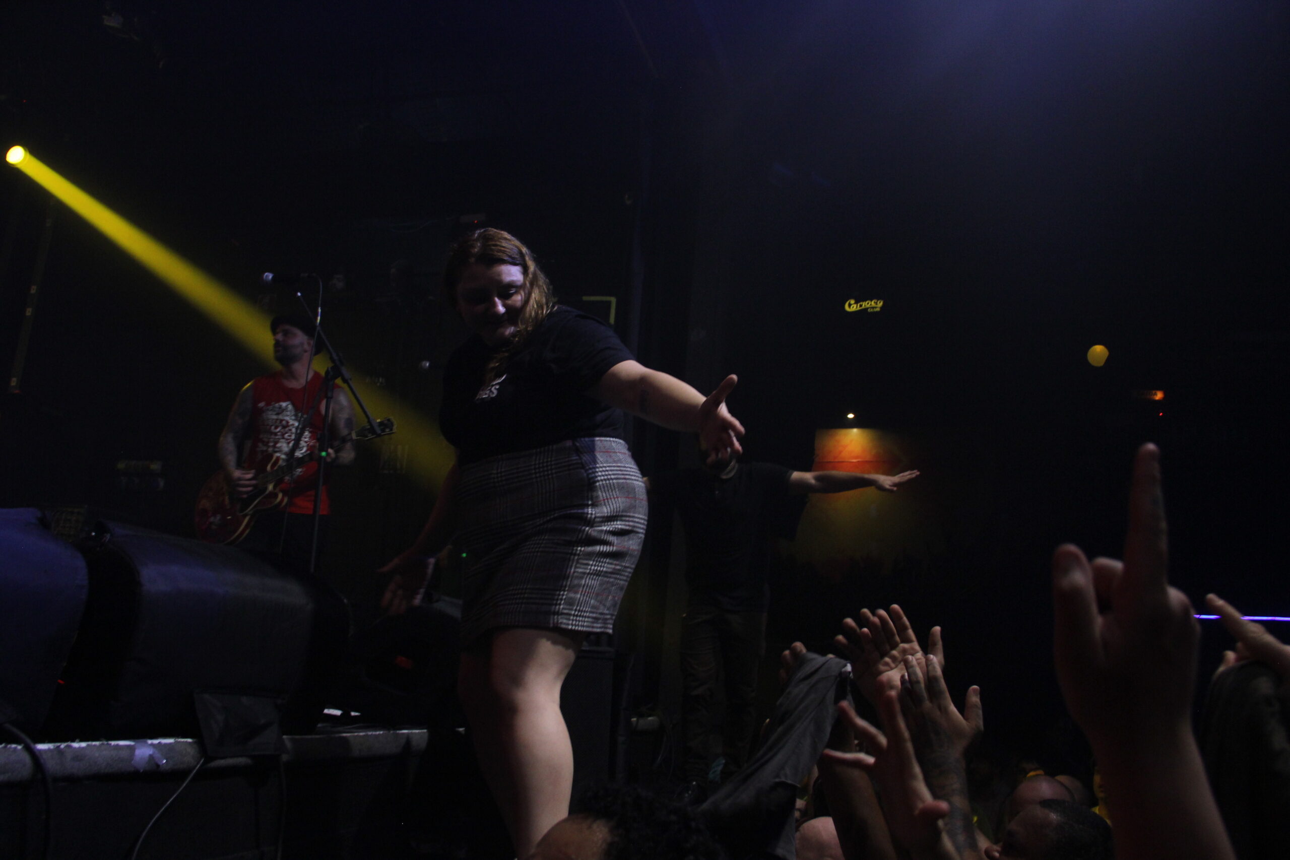 Apresentando nova formação, o evento prosseguiu com Gritando HC, um dos alicerces do hardcore melódico nacional, já contando uma expressiva presença de fãs na pista do clube. A banda aproveitou os primeiros minutos do set para revisitar alguns de seus maiores clássicos, como ‘Punks Não Morreram’, ‘Eu Protesto’ e ‘Libertar Nossas Correntes’. Ao término do primeiro bloco, a vocalista Lê expressou gratidão pela oportunidade de tocar pela primeira vez no Carioca Club, um local onde havia assistido shows de algumas de suas bandas favoritas. Em seguida, destacou os singles inéditos que estarão presentes no próximo trabalho da banda, incluindo faixas como ‘Naquela Noite’, ‘Se Reinventar’ e ‘Alomorfia’. Na reta final, os fãs foram agraciados com a participação especial de Teco Martins, vocalista do Rancore, em ‘Eu Quero Ser Punk Com Você’, e Raffa, do projeto ‘Gritando Ska’, que acrescentou passagens de trompete em ‘Velho Punk’, o maior hino do grupo.