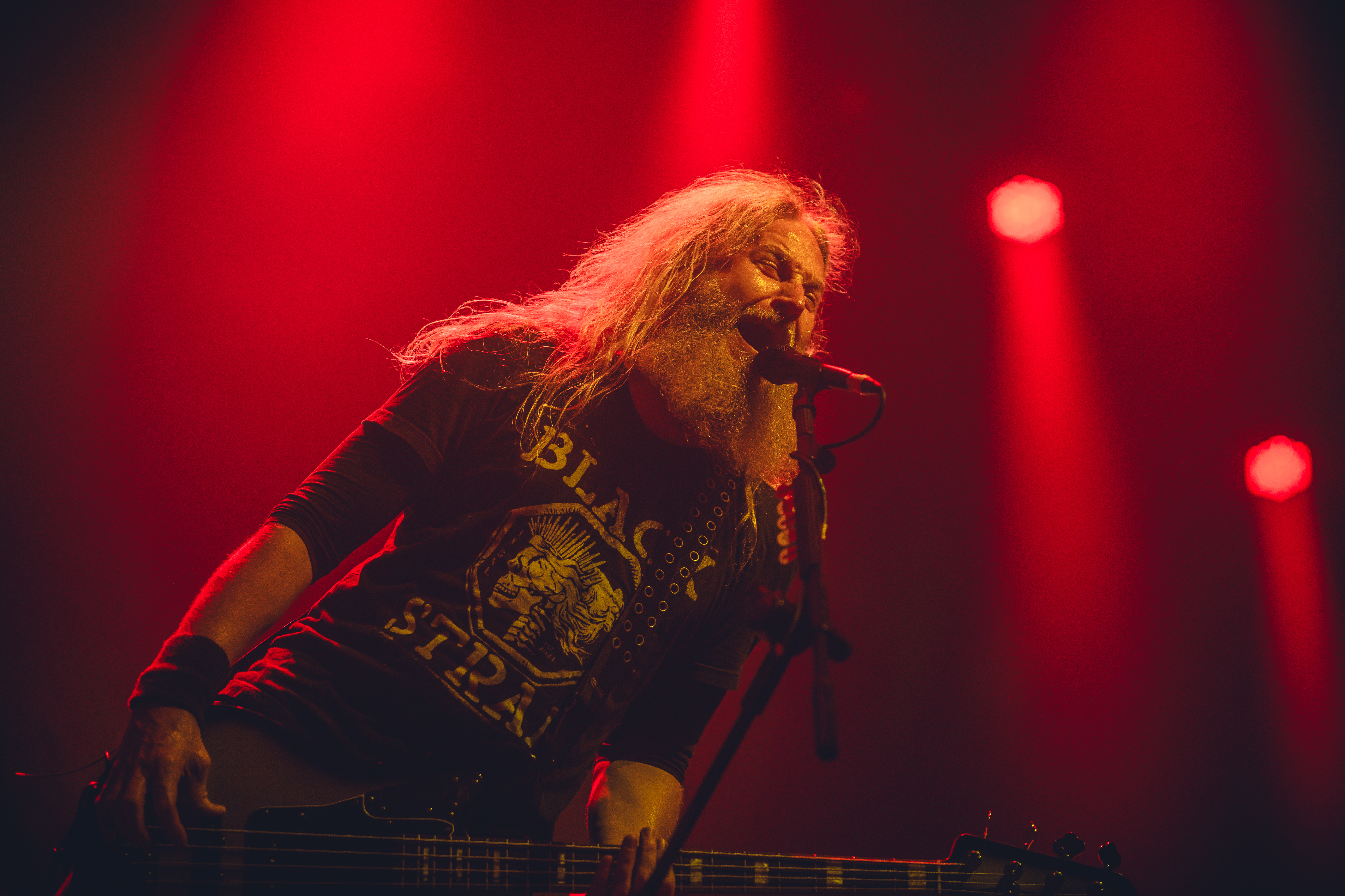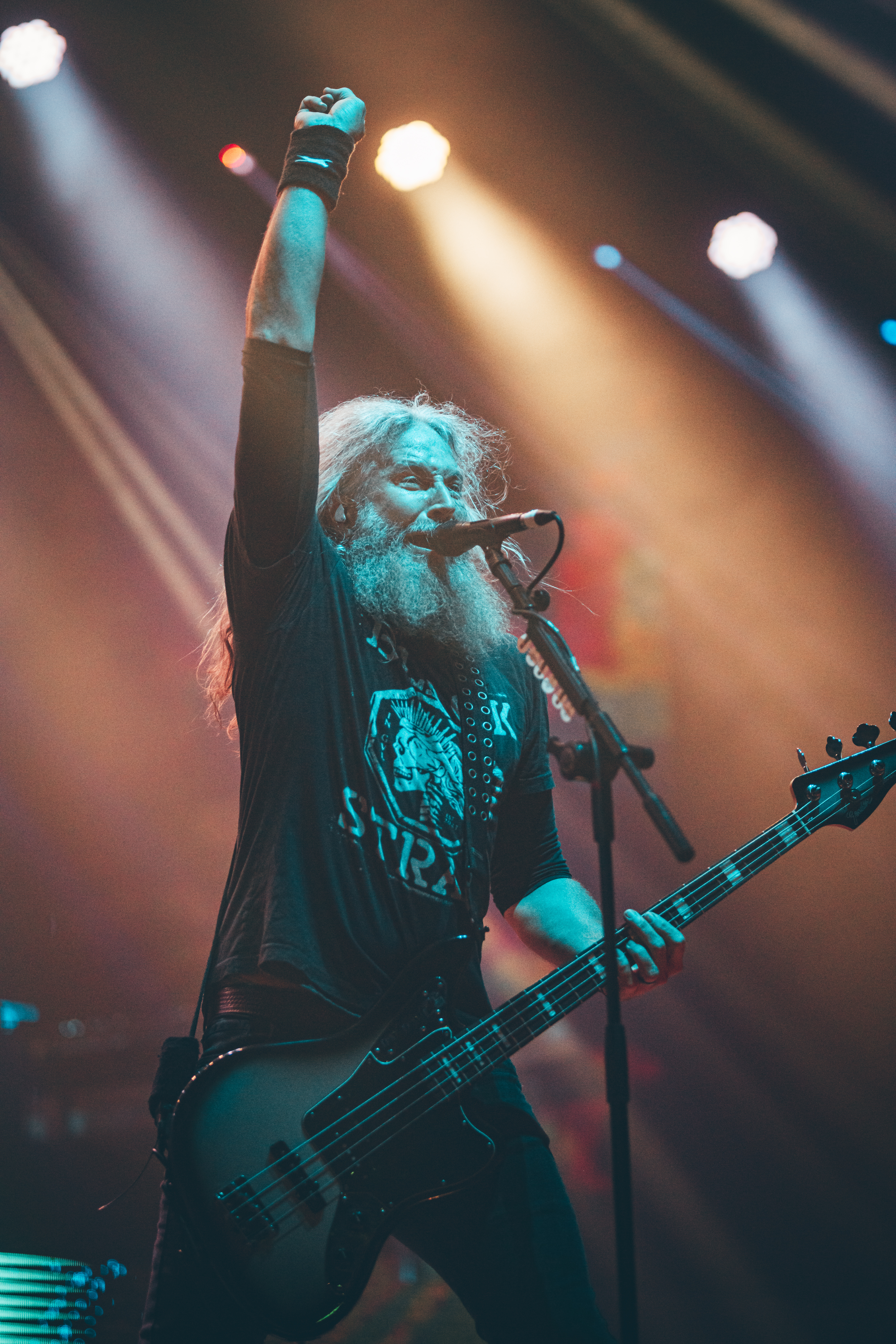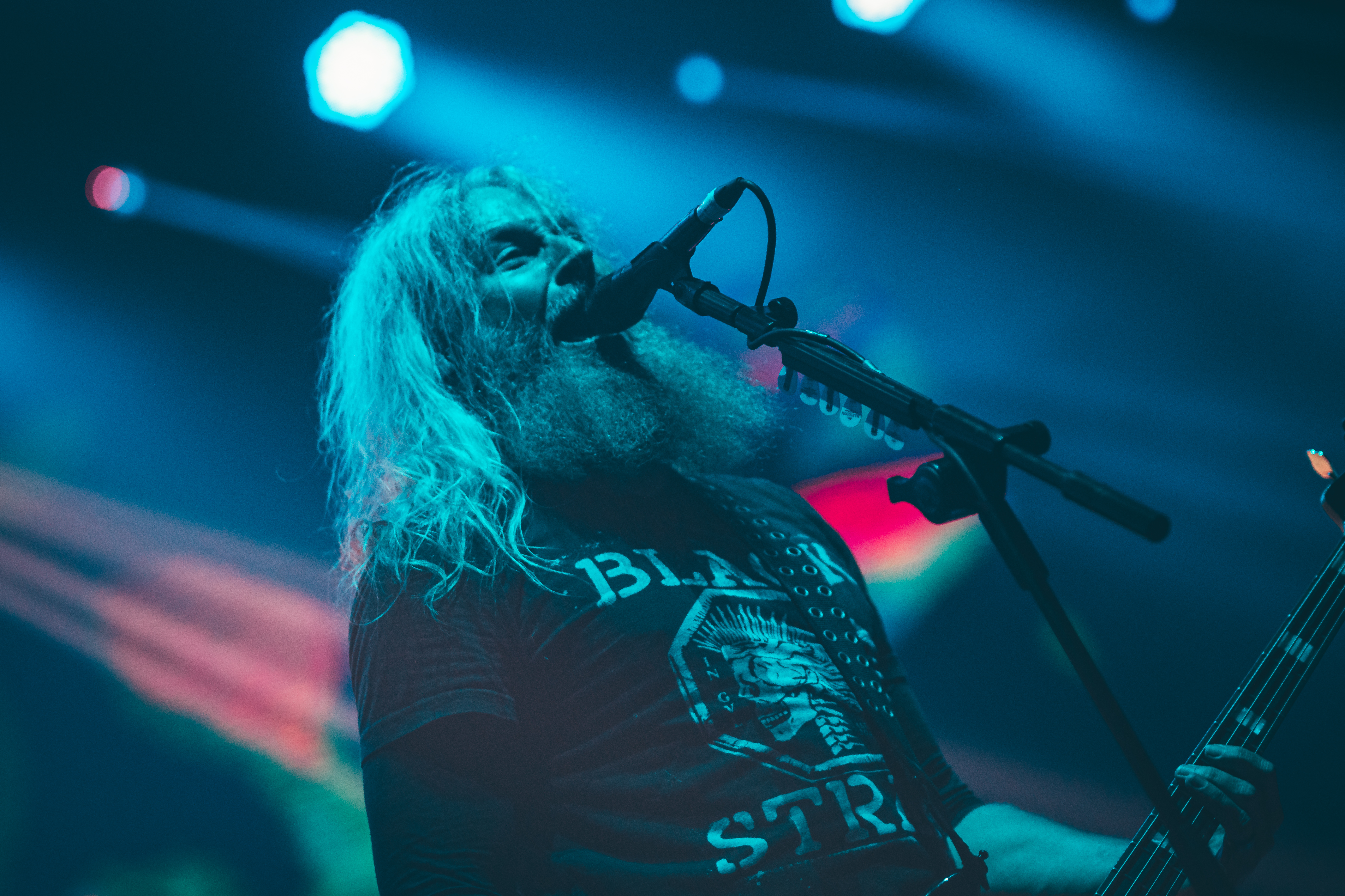 Sem nenhuma atração nacional programada para a abertura, o evento teve início com a performance dos americanos do Mastodon. Com antecedência de 2 minutos em relação ao horário oficial, Troy Sanders (baixo/vocal), Brent Hinds (guitarra/vocal), Bill Kelliher (guitarra), Brann Dailor (bateria) e o tecladista pernambucano João Nogueira subiram ao palco sob os gritos entusiasmados dos fãs entoando ‘Hey, Hey’. A introdução do set foi marcada por ‘Pain With an Anchor‘, a faixa de abertura do novo álbum ‘Hushed and Grim‘, cativando imediatamente a plateia com viradas de bateria complexas e um solo de guitarra impressionante. Em seguida, ‘Crystal Skull’ manteve a energia com o virtuosismo de Brent, apresentando mais uma sequência habilmente elaborada de riffs rápidos.