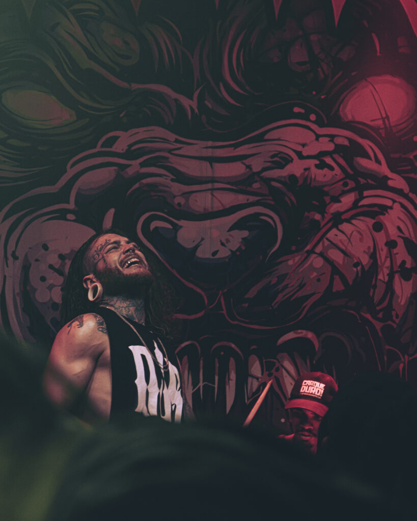 Na sequência, foi a vez do John Wayne subir ao palco — um dos nomes mais tradicionais do deathcore/metalcore nacional, em atividade desde o início dos anos 2010. Com um repertório de músicas extremamente agressivas, como ‘Aliança‘, ‘Abel‘, ‘Demasia‘ e ‘Pesadelo Real‘, o grupo incendiou o público, que finalmente começou a se entregar ao mosh característico do metalcore, marcado por movimentos curiosos como socos no ar e as famosas ‘estrelinhas’, lembrando até mesmo capoeira.
