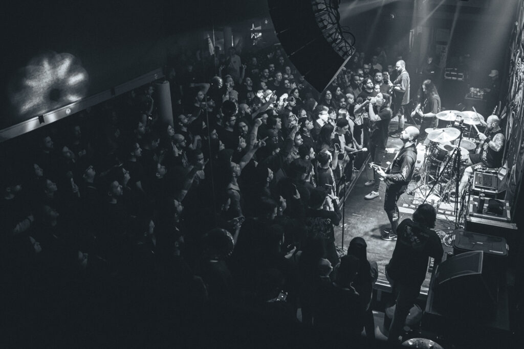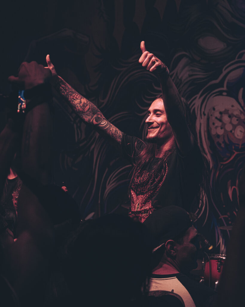 Faixas com sonoridade mais acessível, como ‘Reconectar‘ e ‘Aliança – Parte II‘, também apareceram no setlist, equilibrando brutalidade e melodia. Já na reta final, o clima de celebração tomou conta, com diversas participações especiais que empolgaram ainda mais a plateia. Daniel, do Into The Void, contribuiu com vocais em ‘Tempestade‘; Milton Aguiar, do Bayside Kings, trouxe ainda mais energia do hardcore straight edge em ‘Aliança, Pt. II‘ — chegando a se jogar no público; e em ‘Lágrimas‘, André Barriel retornou ao palco com seus vocais agressivos, encerrando a apresentação em alta. Este momento, foi, sem dúvida, um grande presente para os seguidores mais fieis.