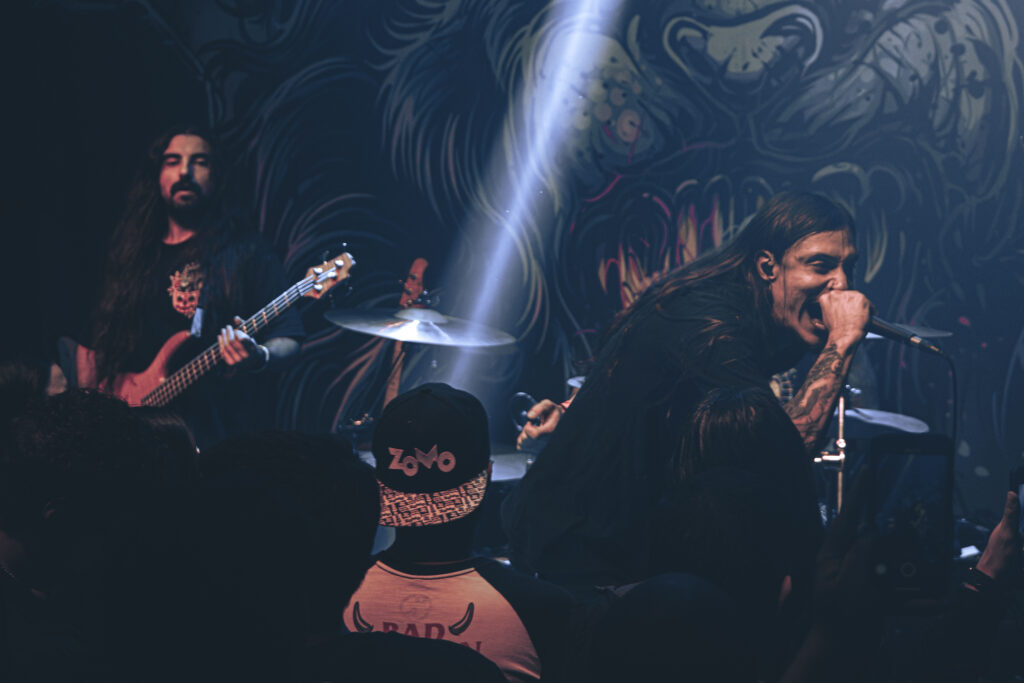 A abertura do evento ficou por conta da banda Into The Void, vinda diretamente de Piracicaba, no interior de São Paulo. Fundado em 2021, o grupo apresenta um deathcore de raiz, com influências claras de nomes como Chelsea Grin, Despised Icon e Burning The Masses. Isso ficou evidente em faixas como ‘Burn’, ‘Slaves’ e ‘Anxiety’, todas marcadas por riffs carregados de breakdowns, batidas do tipo stomp e vocais que transitavam entre o gutural profundo e o rasgado. O set ainda contou com solos em arpejos e explosões repentinas de blast beats — elementos característicos do estilo. Em ‘Desolation‘, o vocalista André Barrial, da banda Fim da Aurora, fez uma participação especial. Sem dúvida, o grupo entregou um som poderoso e empolgante, especialmente para os fãs das raízes mais agressivas do deathcore.