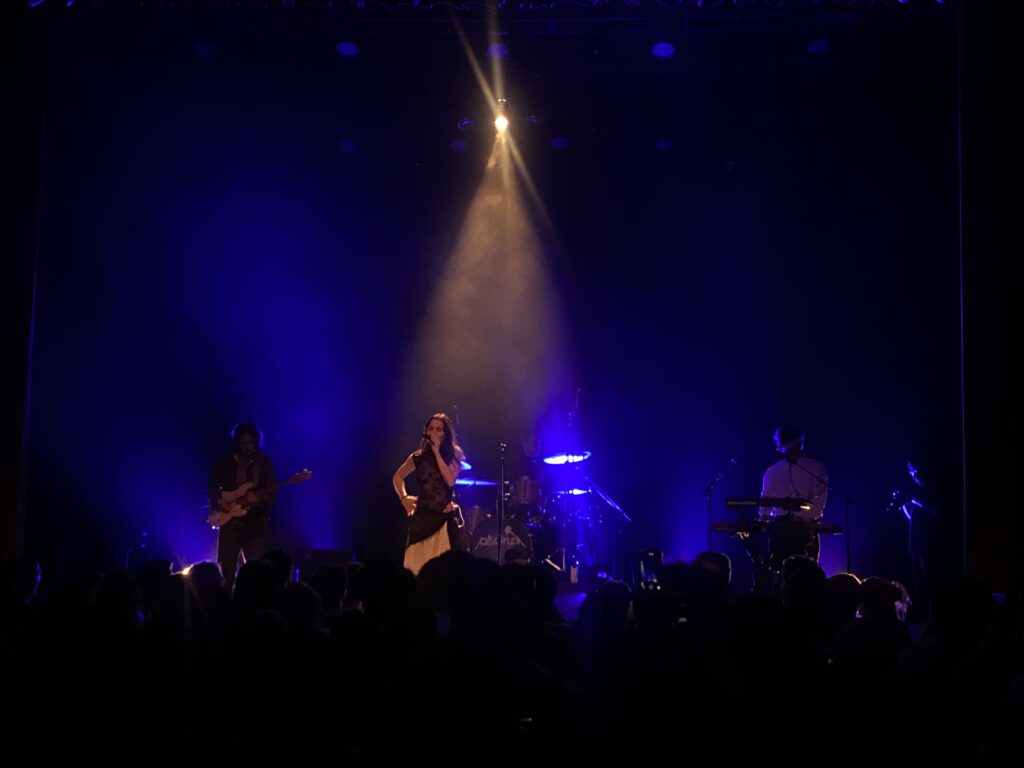 Com a casa lotada, Gabrielle Philippi (voz), Marlon Lopes da Silva (guitarra e voz), Gabriel Geisler (baixo) e Felipe Protski (teclado) subiram ao palco para abrir a noite com o frescor e a intensidade da nova geração do indie rock brasileiro. Um belíssimo e bem executado jogo de luzes - com tons predominantes de roxo e dourado - criou uma atmosfera marcante que, em certos momentos, remetia ao clima intimista do lendário MTV Unplugged in New York, álbum ao vivo do Nirvana lançado em 1994.