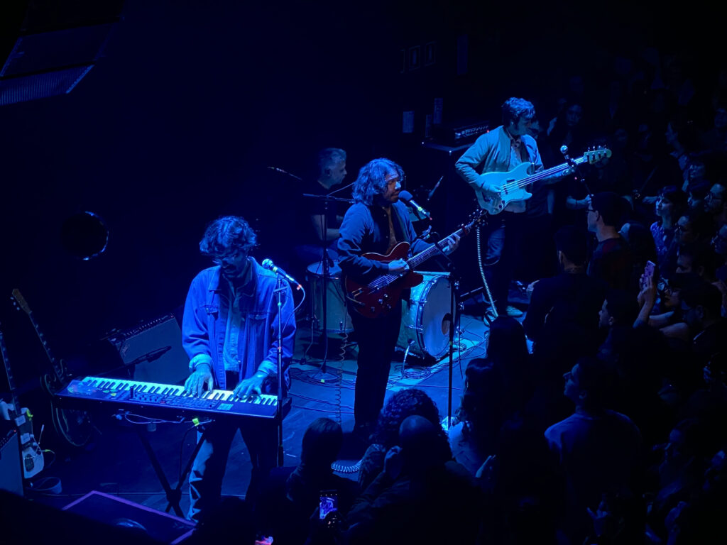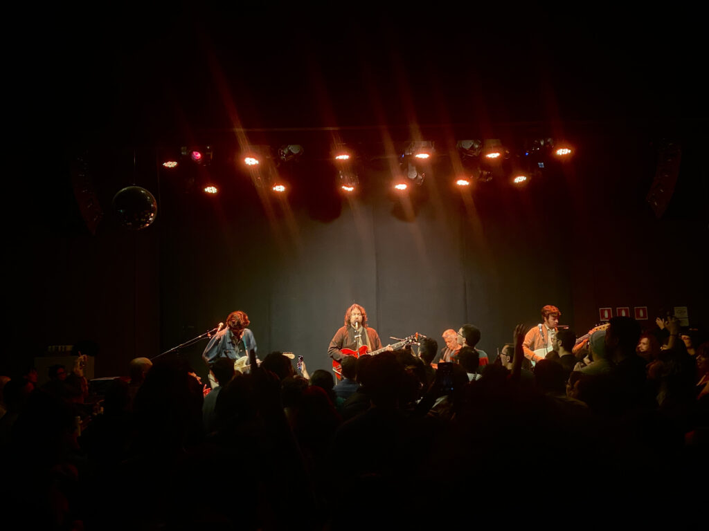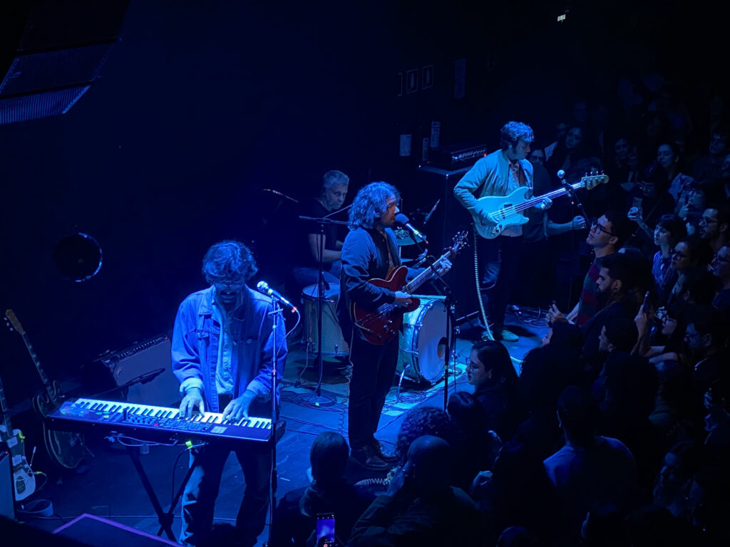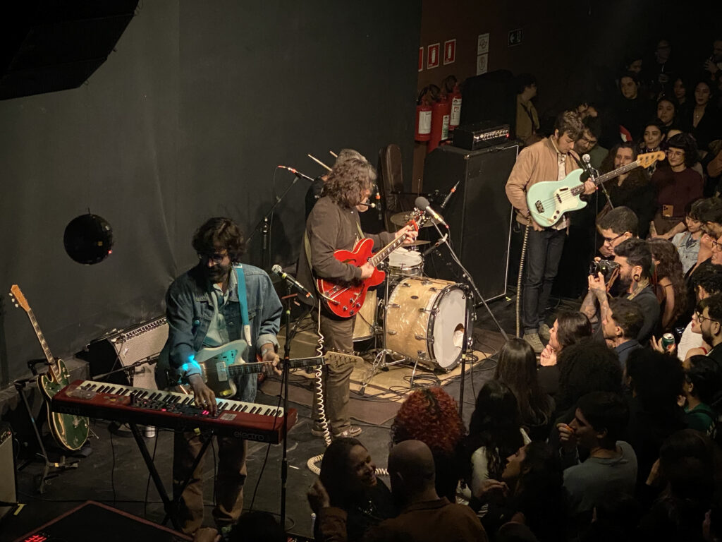 Após o intervalo, Teago Oliveira (voz e guitarra), Lelo Brandão (guitarra e sintetizador), Felipe Dieder (bateria) e Lucas Gonçalves (baixo) subiram ao palco e abriram com ‘A Vida É Uma Aventura’, que incendiou o público logo de início. Em seguida vieram faixas como ‘Me Deixa Legal’, ‘Clonazepam 2mg’, ‘Jogue Tudo Fora’ e o hit ‘Às Vezes um Clichê’, todas entoadas em coro pelos fãs. A sonoridade da banda alternava entre o indie rock, a MPB e elementos rítmicos próximos ao samba, formando uma combinação rica e dinâmica. O público, completamente envolvido, cantava alto e participava ativamente do show — em muitos momentos, no mesmo nível de protagonismo dos músicos. A estrutura intimista da casa, com palco baixo e proximidade física, reforçava a sensação de que não havia barreiras entre banda e plateia.