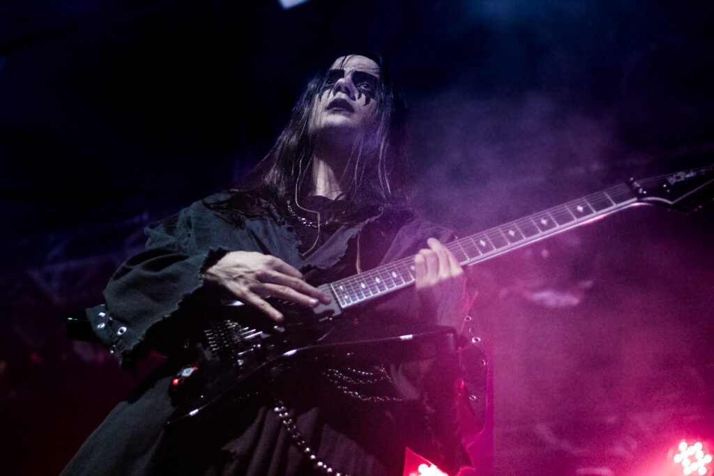 Na sequência, e já com a casa lotada, foi a vez do Uada, de Portland (EUA), banda já conhecida do público paulistano por suas passagens em 2019 e 2023. Fiel ao seu estilo visual, o grupo se apresentou em silhuetas — desta vez com um pouco mais de iluminação em comparação a shows anteriores, o que facilitou o trabalho dos fotógrafos. O set trouxe um black metal melódico bem lapidado, marcado por batidas ultrarrápidas de bateria, riffs densos e solos mais elaborados do que se costuma ouvir no gênero. Foram apenas cinco músicas, mas o show ultrapassou a marca dos 30 minutos.