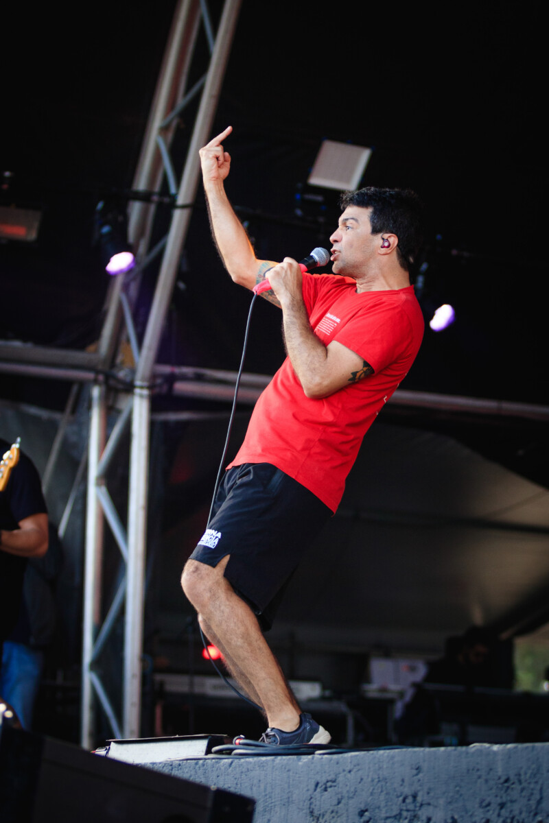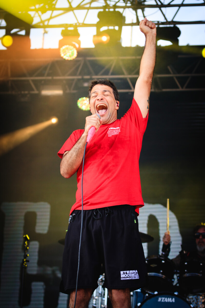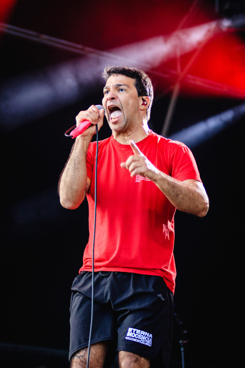 Nesse momento de ascensão da extrema-direita e de uma internacional fascista mundo afora, foi providencial ouvir ‘A Urgência’ na arrancada do set (som lançado no primoroso e legendário álbum Zero e Um, de 2004). Logo na sequência veio ‘Tão Iguais’, como no disco. E foi durante essa faixa que Rodrigo se dirigiu a todos e a todas as presentes atentando: “no Brasil, no estado de São Paulo, a gente tem um facho chamado Tarcísio de Freitas. E aqui vocês estão vendo o crescimento da extrema-direita. É muito bom ver um fest como este, com os ‘nossos’, com os que resistem. Vamos, vamos, vamos!”