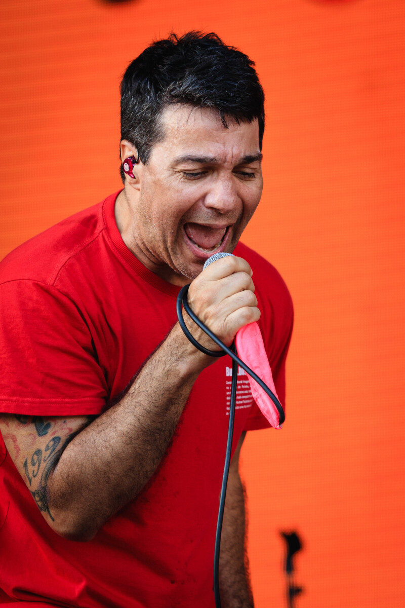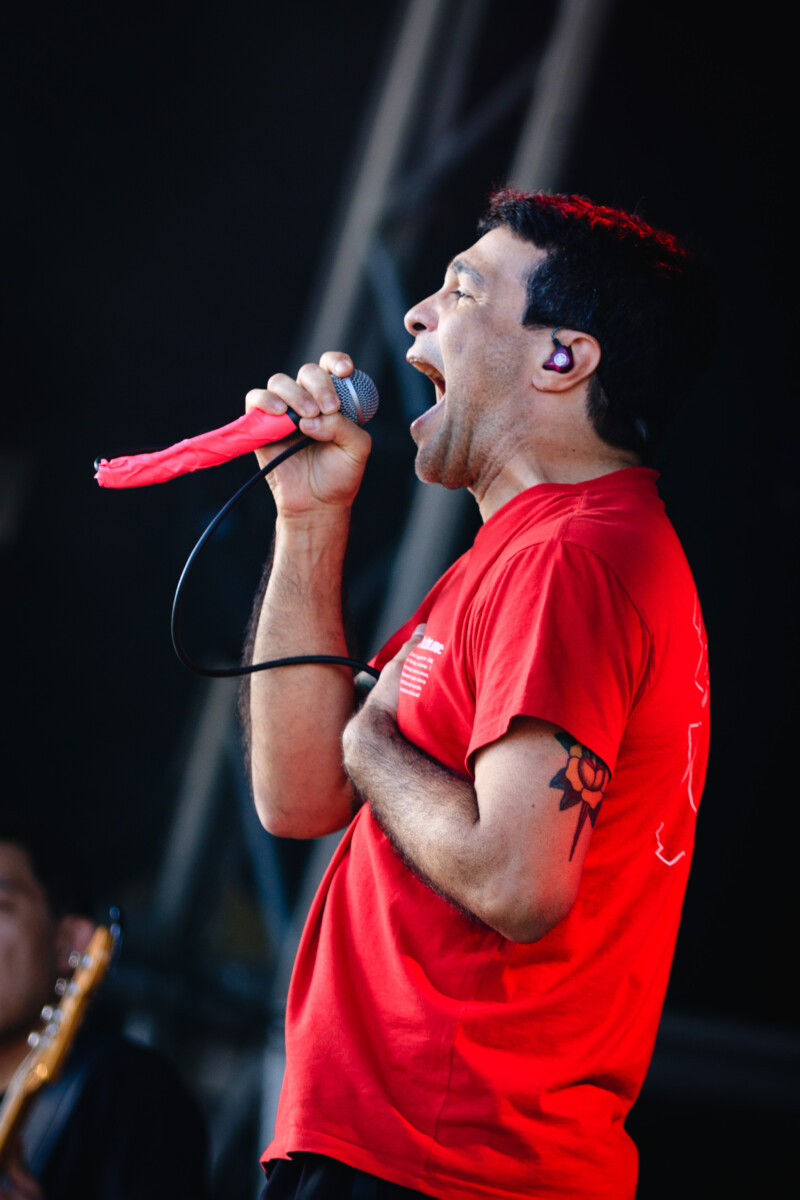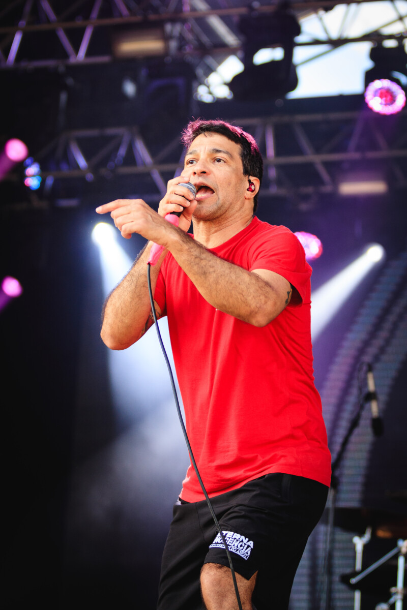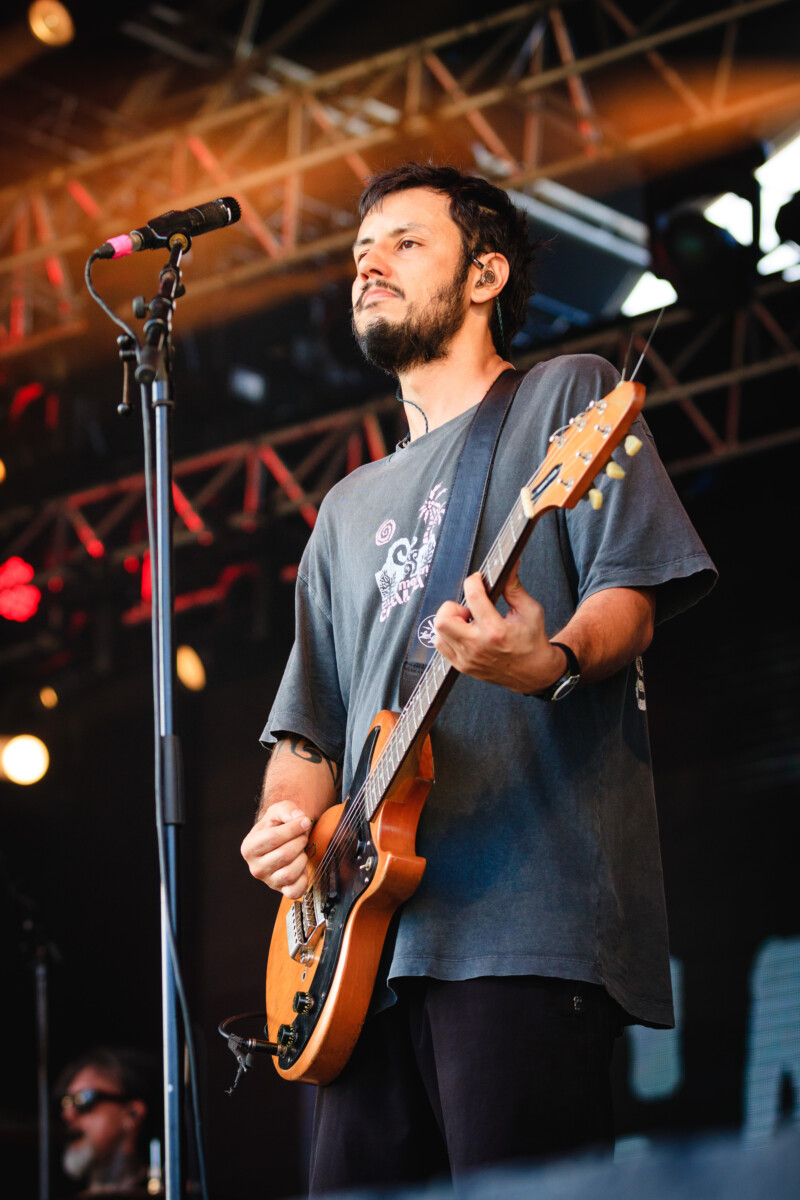 Nesse momento de ascensão da extrema-direita e de uma internacional fascista mundo afora, foi providencial ouvir ‘A Urgência’ na arrancada do set (som lançado no primoroso e legendário álbum Zero e Um, de 2004). Logo na sequência veio ‘Tão Iguais’, como no disco. E foi durante essa faixa que Rodrigo se dirigiu a todos e a todas as presentes atentando: “no Brasil, no estado de São Paulo, a gente tem um facho chamado Tarcísio de Freitas. E aqui vocês estão vendo o crescimento da extrema-direita. É muito bom ver um fest como este, com os ‘nossos’, com os que resistem. Vamos, vamos, vamos!”