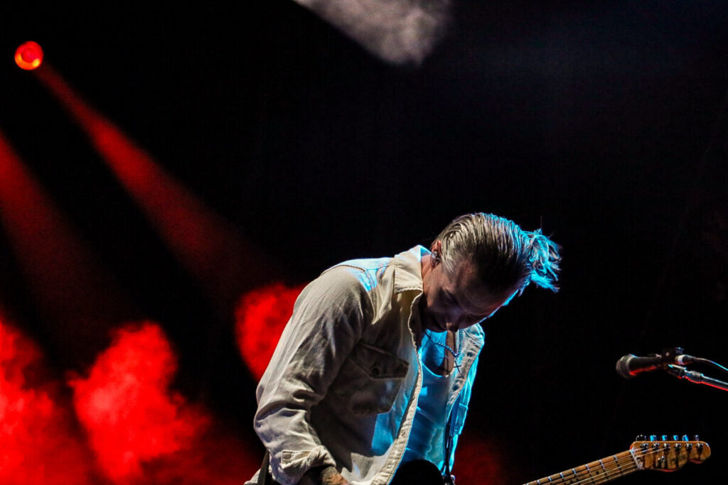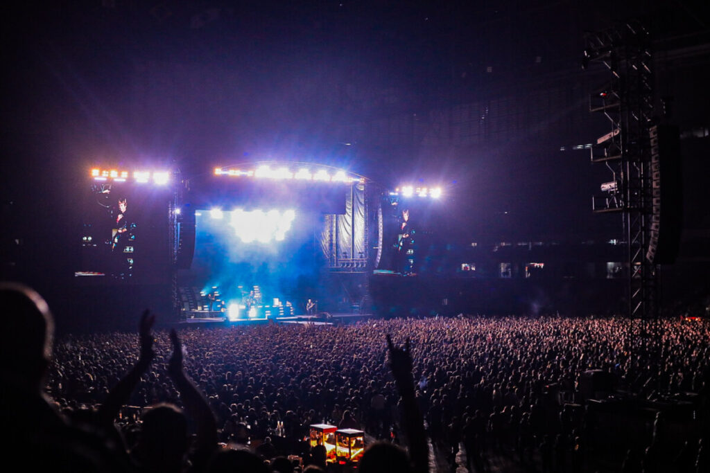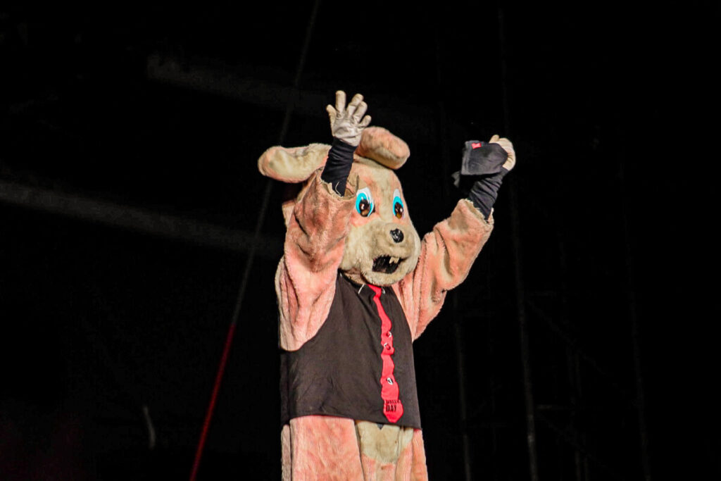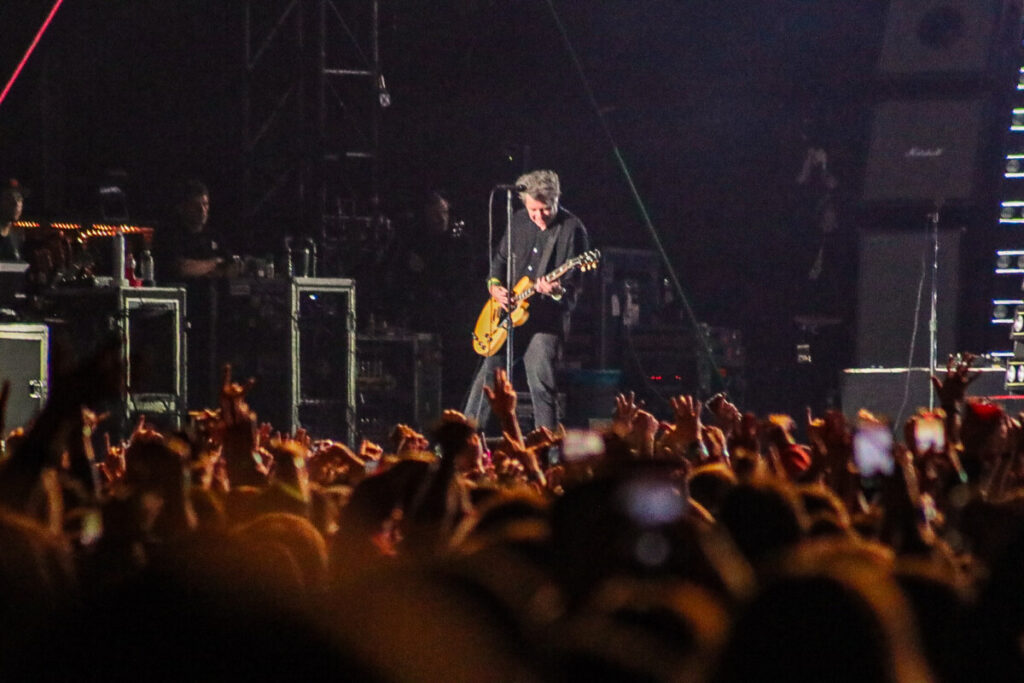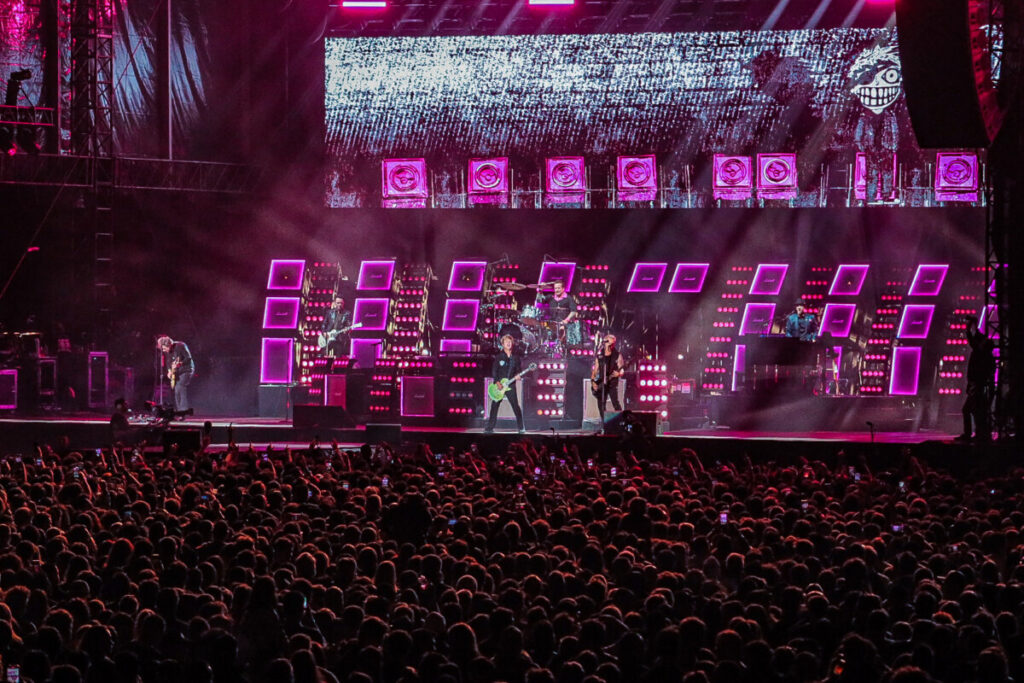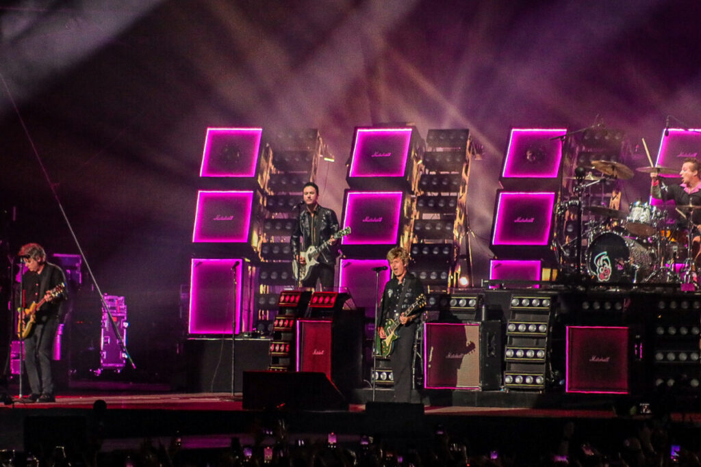Após uma breve pausa para ajustes no cenário, os alto-falantes começaram a ecoar o clássico ‘Bohemian Rhapsody’, do Queen, pouco antes das 21h30. O coro espontâneo da multidão anunciava que o tão aguardado momento se aproximava. Para aumentar ainda mais a euforia, o irreverente Drunk Bunny, mascote do Green Day, surgiu no palco interagindo com os fãs ao som de ‘Blitzkrieg Bop’, dos Ramones.