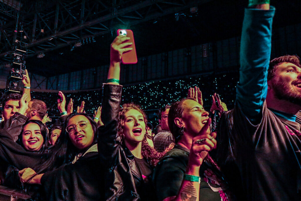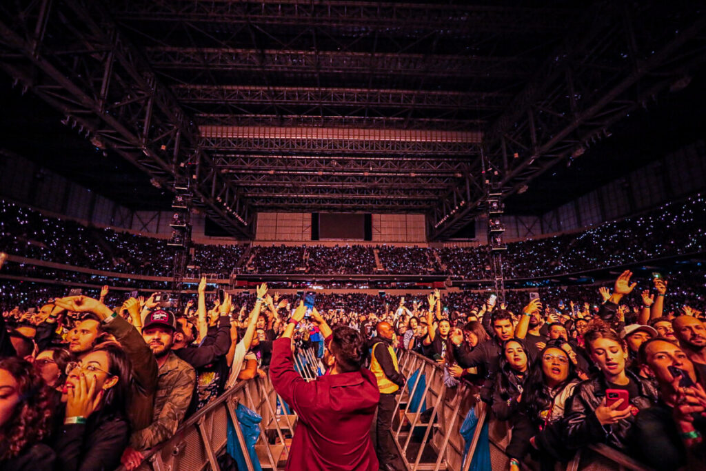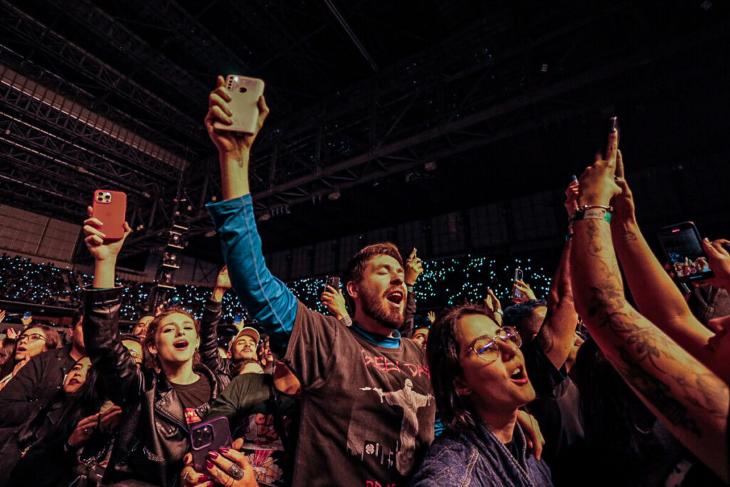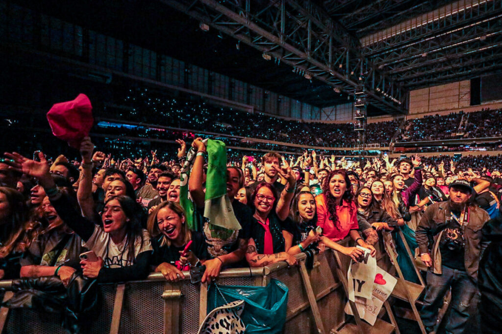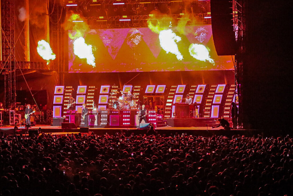 Sem demora, a banda abriu o show com a faixa-título de American Idiot (2004), levando o público ao delírio. A canção veio com uma atualização na letra — ‘Well, maybe I’m the faggot, America // I’m not a part of a MAGA agenda‘ — em crítica à atual gestão de Donald Trump. Na sequência, ‘Holiday’, outro grande hit do álbum, incendiou o palco com labaredas e efeitos pirotécnicos. Em ‘Know Your Enemy’, Billie convidou uma fã ao palco para dividir os vocais no refrão, arrancando aplausos e gritos da multidão. Já a balada ‘Boulevard of Broken Dreams’, transformou a Arena da Baixada em um verdadeiro mar de luzes de celulares — um dos momentos mais belos e marcantes da noite.